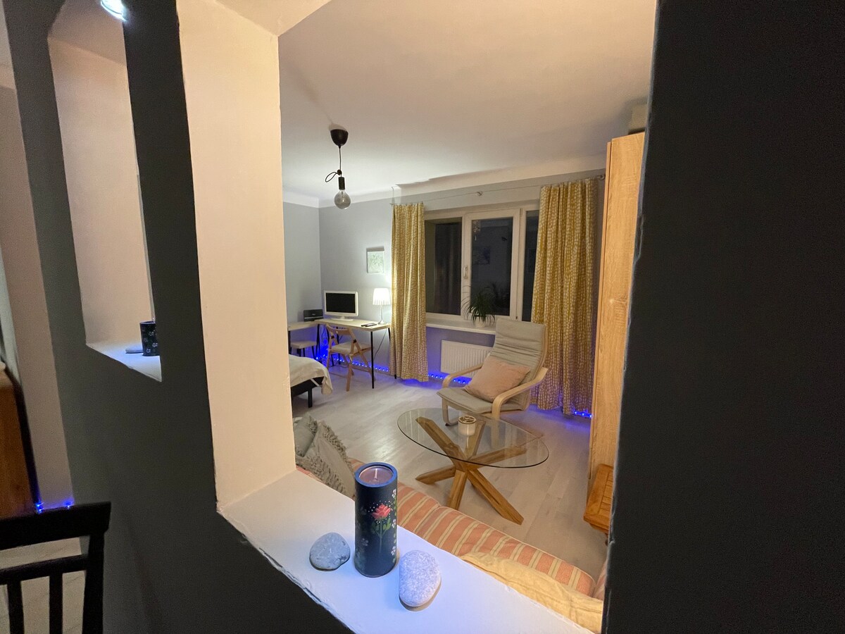 Moderna, jauka un mājīga 26 kv.m. studija, aprīkota ar visu nepieciešamo, logi ar skatu uz klusu pagalmu. Pastaigas attālumā līdz pilsētas centram (apmēram 12 minūtes). Autostāvvieta, autobusu pietura 5 minūšu attālumā ar kājām.