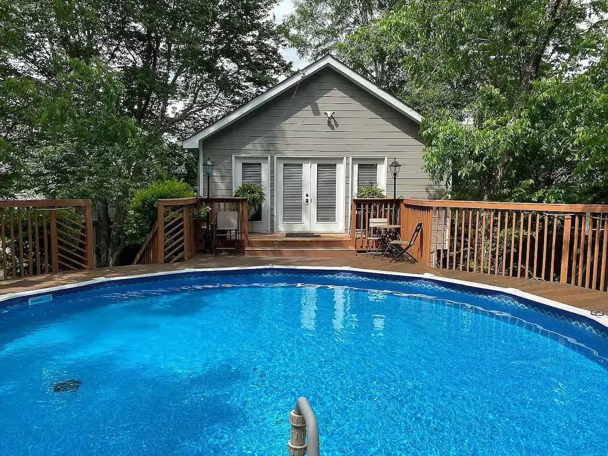 This wonderful cozy studio is super private, with its own entrance right on the side of the house. Plus, it comes with a full kitchen and bathroom. It’s a peaceful, private space with a well-equipped kitchen featuring a big refrigerator, a queen-size bed, a 45” smart TV, a private entrance, an outdoor deck that leads to the backyard, and parking right next to the unit. We’re just a 30-minute drive to downtown Atlanta, Mercedes-Benz Stadium, the GA Aquarium, and 15 minutes to Gas South Arena.