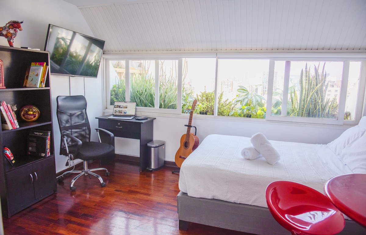 Šim privātajam lofta/studijas tipa dzīvoklim ir centrāls un stratēģisks novietojums Miraflores tūristu un drošajā rajonā Limā. Tajā ir 1 divguļamā gulta, 1 vienguļamā gulta un 1 dīvāngulta. 1 pilna vannasistaba ar karsto ūdeni, pilnībā aprīkota virtuvīte, ātrgaitas Wi-Fi, darba zona, kluss skats uz pilsētu, labs apgaismojums un ventilācija, 2 lifti, diennakts konsjeržs, neatkarīga ieeja un tuvu visu veidu produktu un pakalpojumu veikaliem.