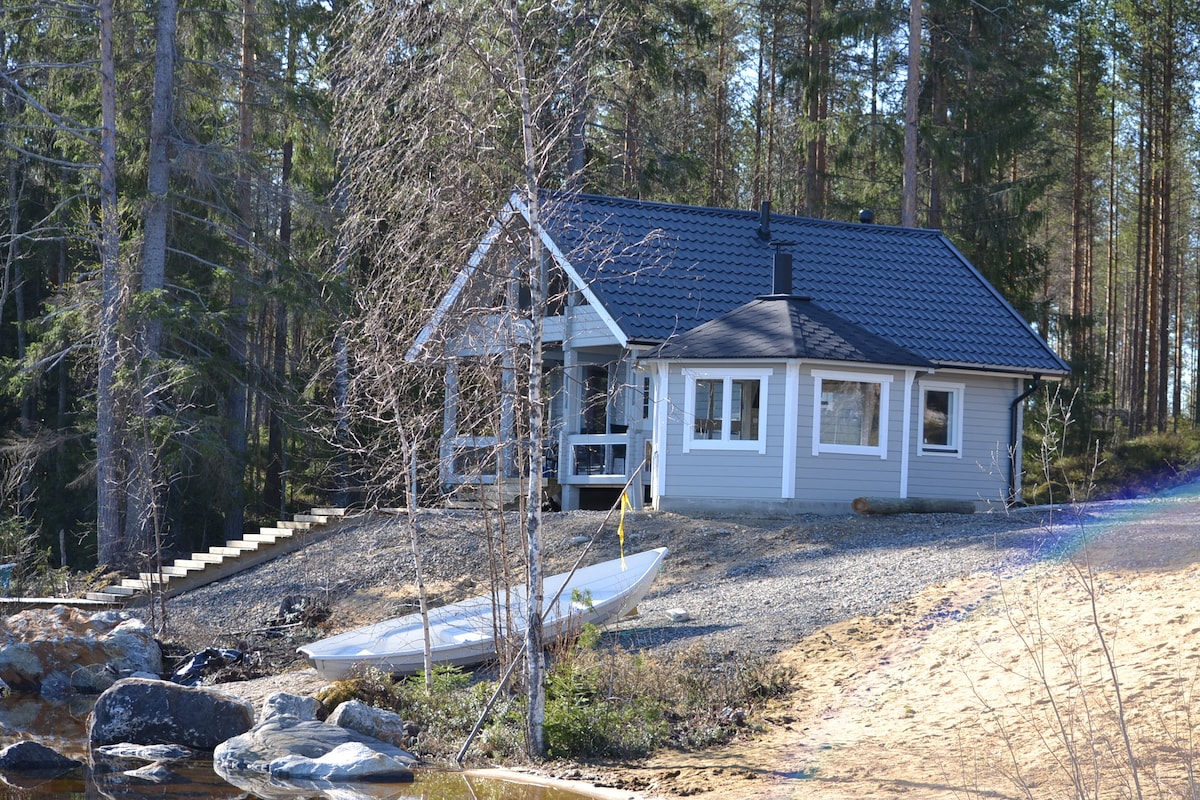 Divu guļamistabu māja (75 m2) 60 metru attālumā no ezera un pirts māja 20 metru attālumā no Viinijärvi ezera krasta, Polvijervi, ļoti skaistā apkārtnē, 25 minūšu brauciena attālumā no Joensuu centra. Māja ir labi aprīkota un skaisti iekārtota. Virtuvē ir trauku mazgājamā mašīna un televizors. Vannasistabā ir arī infrasarkanā pirts, bet pie ezera ir arī malkas pirts. Cenā ir gultasveļa, dvieļi ,kafija, tēja, eļļa utt.
