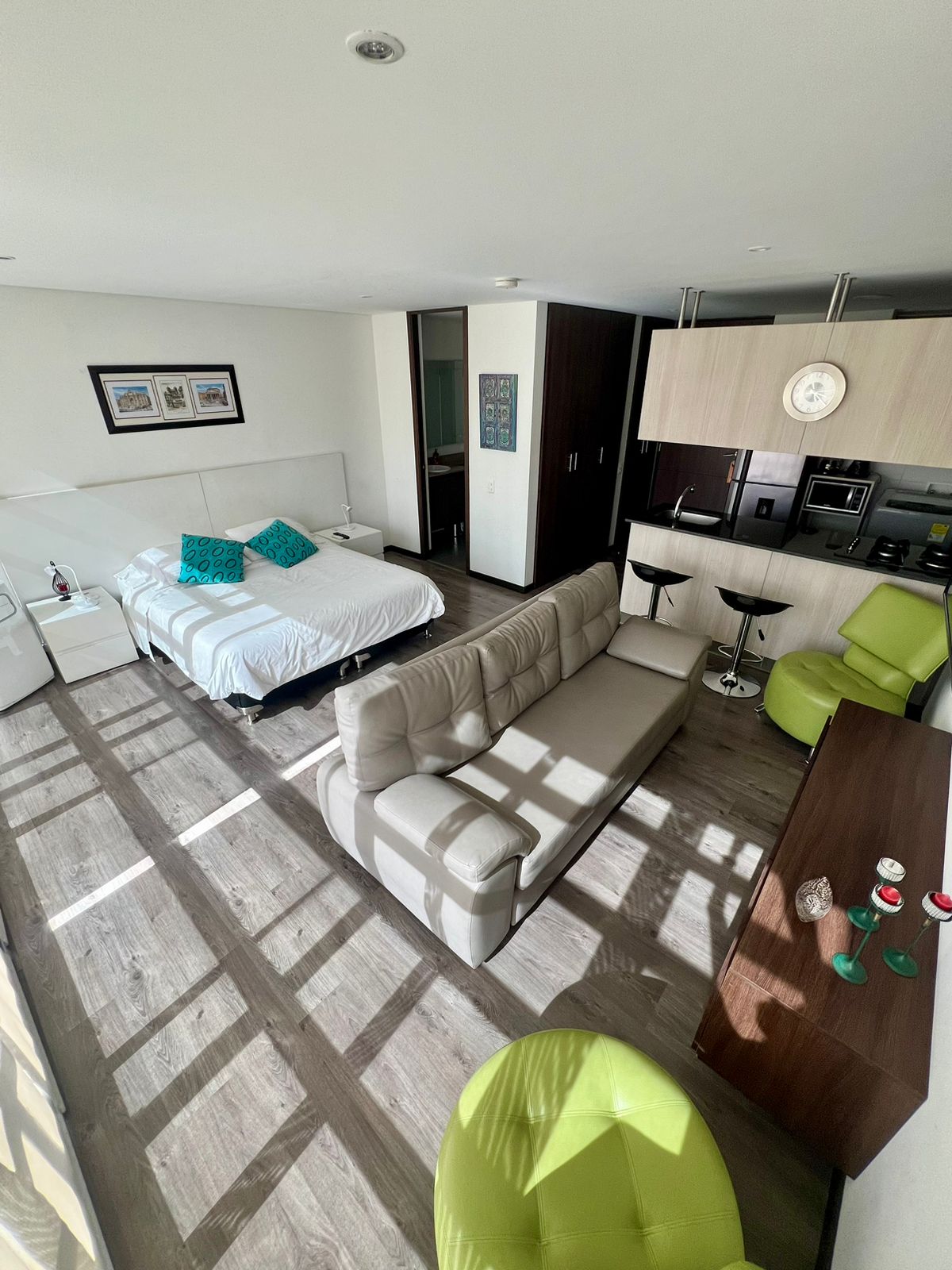 Ērts, pilnībā aprīkots studijas tipa dzīvoklis, kas atrodas Rionegro centrālajā rajonā, trīs dziesmu klusā vietā, klusā vietā atpūtai un komfortam, tikai 10 minūšu attālumā no pašvaldības galvenā parka ar kājām, 5 minūšu attālumā no San Nicolás tirdzniecības centra un 20 minūšu attālumā no José Maria Cordoba starptautiskās lidostas. Tuvumā ir autobusu pieturas, lielveikali, veikali, iepirkšanās centri un restorāni.