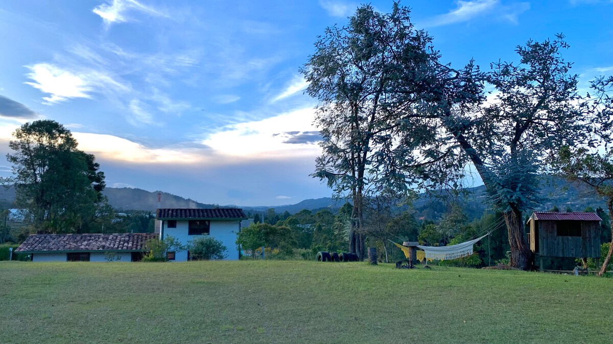 Lauku māja ar zaļām zonām un skaistiem skatiem , kas ir ideāli piemērota ceļotājiem, kuri vēlas atslēgties no dabas vai strādāt attālināti klusā vidē; pilnībā aprīkota māja ir sadalīta 2 guļamistabās, 2 vannasistabās, viesistabā-virtuvē un āra terasē, kas atrodas 15 minūšu attālumā no Hosē Marijas Kordovas starptautiskās lidostas ( mēs piedāvājam transportu), 5 minūšu attālumā no pilsētas teritorijas un 10 minūšu attālumā no Rionegro parka un Sanantonio de Pereiras. Džakuzi papildu maksa ir 30 tūkstoši stundā