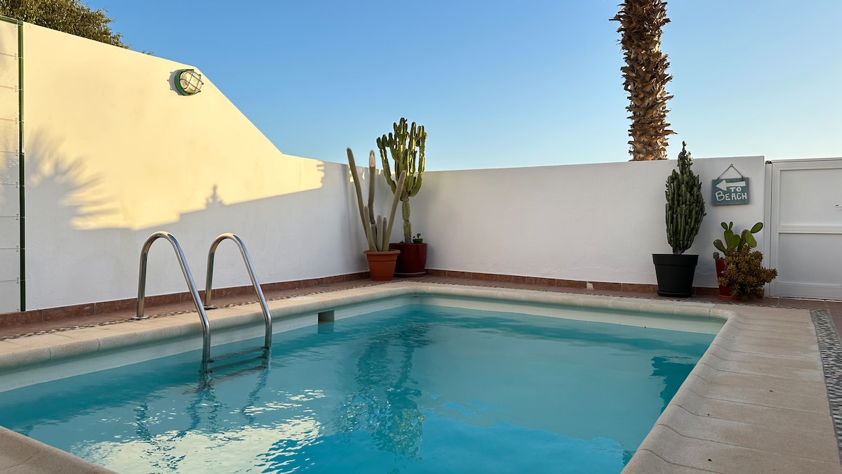 Spilgts duplekss ar privātu baseinu Tas atrodas klusā dzīvojamajā kompleksā, mazāk nekā 10 minūšu gājiena attālumā no Playa de los Charcos. Tā sastāv no divām divvietīgām guļamistabām, divām vannasistabām, ēdamistabas/ viesistabas, pilnībā aprīkotas neatkarīgas virtuves un solanas. Atpūtas telpa ved uz baseina terasi. Mājai ir viena autostāvvieta.