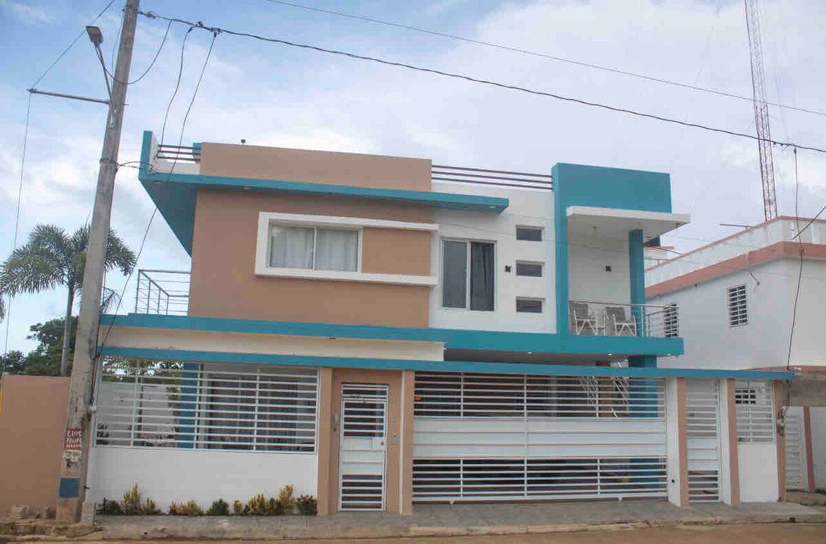 Burvīga māja 2. līmenī, kas atrodas Nagua centrā un sastāv no 2 istabām, ir gaisa kondicionētājs, 1 moderna vannasistaba ar KARSTU ŪDENI, dzīvojamā istaba ar 55 plgs 4K Smart TV, NETFLIX, YouTube Premium Premium Premium, WiFi 50/10 mbs, aprīkota virtuve ar plašu un mājīgu balkonu, ar autostāvvietu telpās, tā ir droša dzīvesvieta, kas ir KOPĪGA ar citām mājām īpašumā, māja atrodas tikai 2 minūšu gājiena attālumā no centrālā parka.
