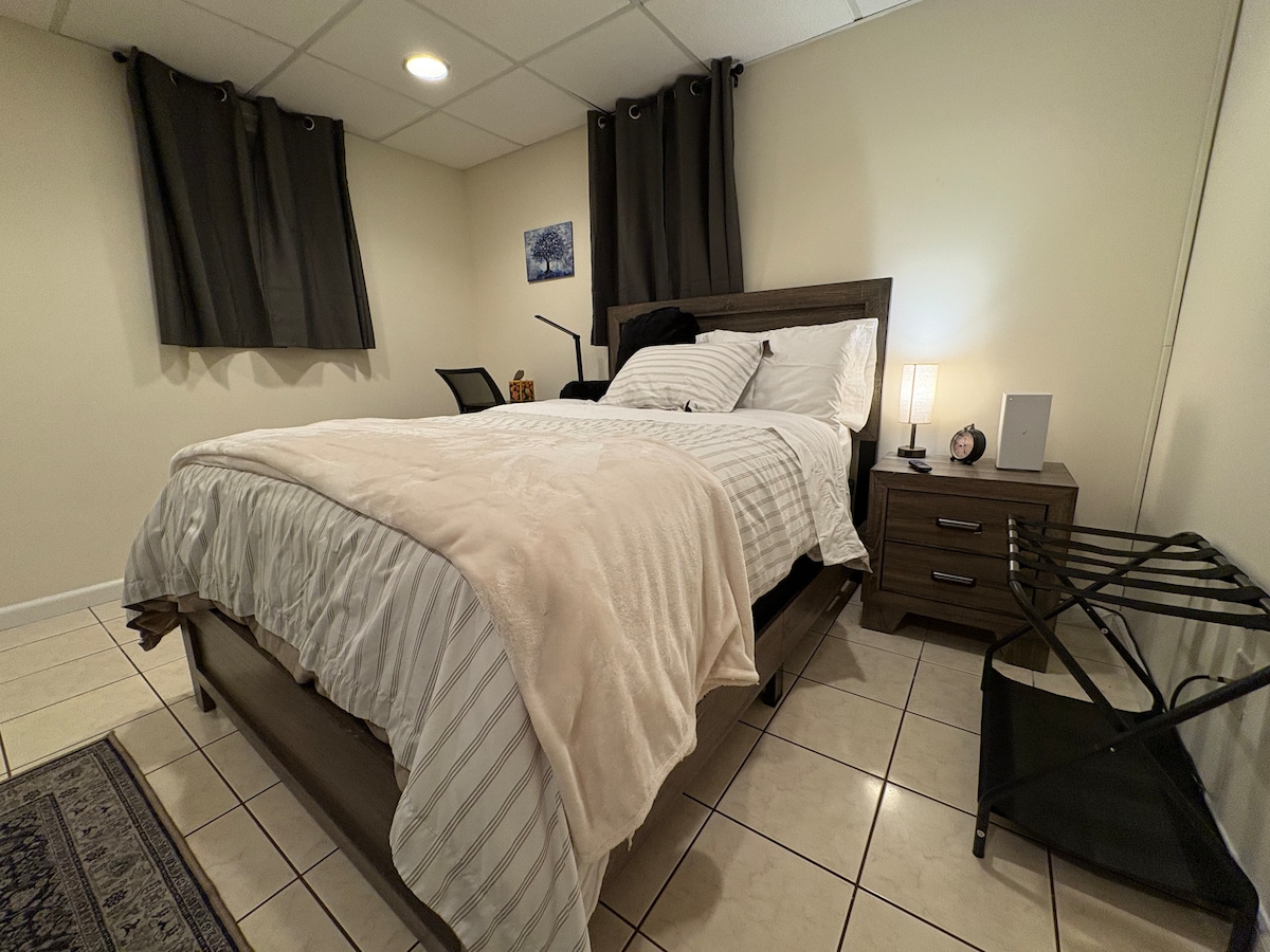 This spacious 1 bedroom 2 bed lower level apartment has accommodations for entertainment and exercise. It has a separate entrance and 1 free parking on premises. It is conveniently located where the side street goes right into Garden State Mall and NYC via bus or driving in minutes. Fully equipped kitchen and wifi for comfortable workspace. In extra efforts to ensure our guests are comfortable, we provide coffee and tea to help them get the day started with a good foot forward.