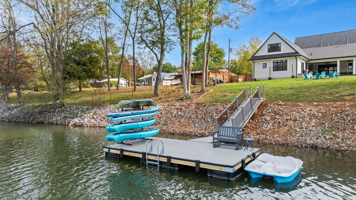 Vai sapņojat par ideālo māju pie ezera, kur pavadīt laiku kopā ar draugiem un ģimeni? Neskatieties tālāk! Šī ir ideāla vieta, kur apmesties, atrodas tikai 25 min attālumā no Noksvilas un 18 min attālumā no Mērvilas, vienā no Austrum TN labākajiem ezeriem; Fort Loudoun un tikai dažu minūšu attālumā no Whispering Cove Marina & Marblegate Farm kāzu/pasākumu norises vietas. Atrodoties desmitiem ēnainu koku, ar vairāk nekā 137 pēdām pie ezera, privātu piestātni un liela izmēra terasi, jums noteikti patiks pavadīt papildu laiku ārā mūsu mīļajās mājās.