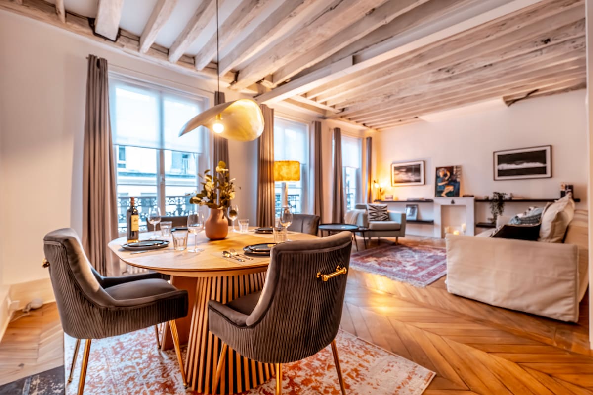 Jūs uzturēsieties pilnībā mēbelētā un aprīkotā dzīvoklī. Šis luksusa, Parīzes stila iedvesmotais dzīvoklis, silts un viesmīlīgs, piedāvās jums viesnīcas komfortu, vienlaikus sniedzot jums sajūtu, ka esat mājās. Dzīvoklis atrodas Parīzes centrā ar sabiedrisko transportu un daudziem populāriem apskates objektiem pie durvīm.