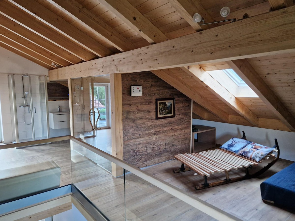 Kalnu namiņš, kas jaunuzcelts koka konstrukcijā, tika pabeigts ar lielu mīlestību pret detaļām 2024. gada martā. Tas ir būvēts modernā stilā un sasniedz visaugstāko enerģētisko Prasības. Ceļš no jūsu autostāvvietas cauri mājai līdz segtajai verandai ar jaunu, elektriski apsildāmu Burbuļvanna ir projektēta zemes līmenī. Iekšpusē varat izmantot malkas krāsni un padariet savu pirti (bez maksas) mājīgu . Pastaigas attālumā atrodas nacionālā parka veloceliņš, skaistas pārgājienu takas.