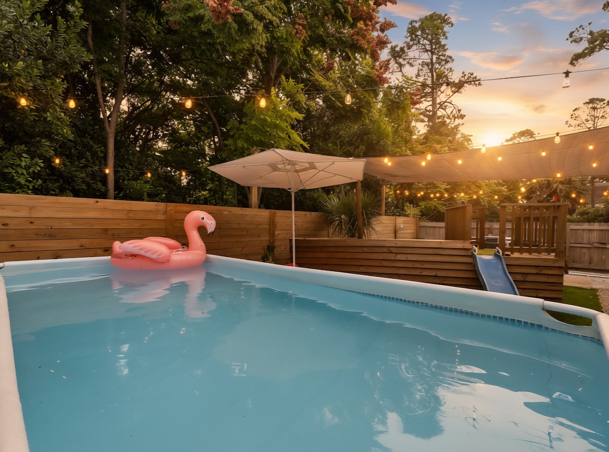 Surf Shack PCB is the perfect beach escape for families or friends! Enjoy driving to the beach and restaurants in your own private golf cart, relaxing in your own private 16-ft pool, pirate ship playground, kayaks, arcades, fenced yard, and Blackstone grill. With a full kitchen, outdoor shower, washer/dryer, and kid-friendly gear, everything’s ready for your group to relax and have fun. Pets welcome!