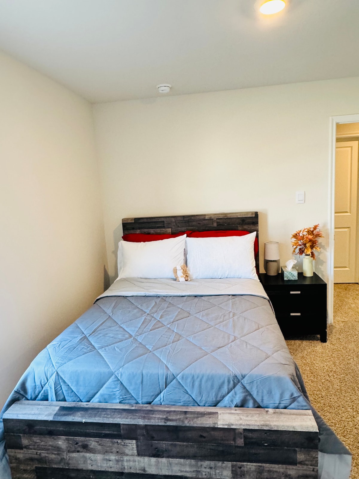 Rather you are here for work or play this home is a comfortable place to land after a long day. Dedicated built-in desk, Grill and chill on the covered back patio and end the evening cozied up by the firepit. Plenty of parking in garage and driveway with basketball hoop. Hike and bike trails close by and a short drive to Oakpoint nature trails too! Plenty of restaurants, Outlet mall, top golf, gun range, Pinstack , skate park, movies and shopping. Discount on longer stays! King bed & queens