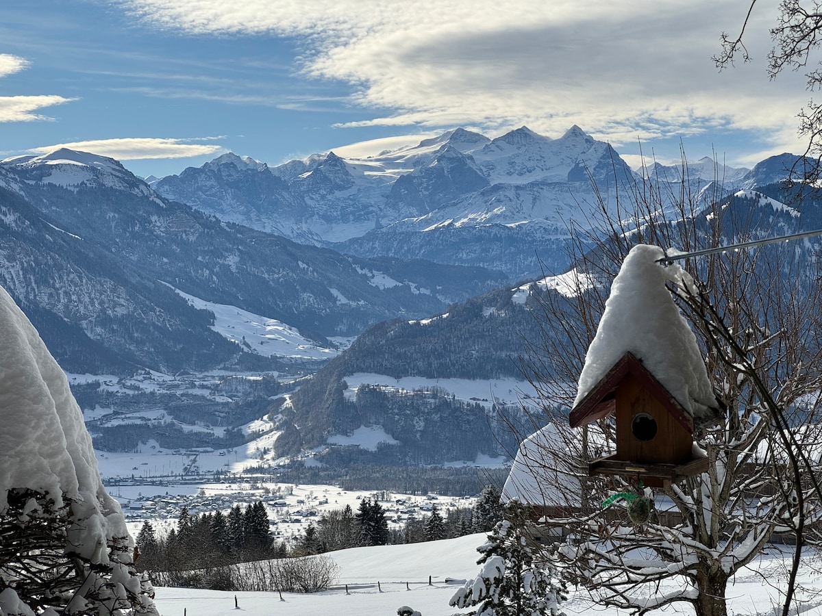 Ideāla vieta tiem, kas meklē mieru un klusumu, kā arī dabas un skaistu telpu mīļotājiem. Šis ekskluzīvais dzīvoklis atrodas pilnībā renovētas savrupas lauku mājas augšstāvā. Pārgājieni vai slēpošana ... iepirkšanās vai ekskursijas Lucernā vai Interlakenā ... vai vienkārši baudiet ezeru tā mirdzošajās krāsās. Apkārt ir neskaitāmas iespējas atklāt Centrālo Šveici. Vieta atpūtai, atvaļinājumam vai ideālajam medusmēnesim. 4 kalnu velosipēdi (kopīgi) Gaisa kondicionētājs (vasarā)