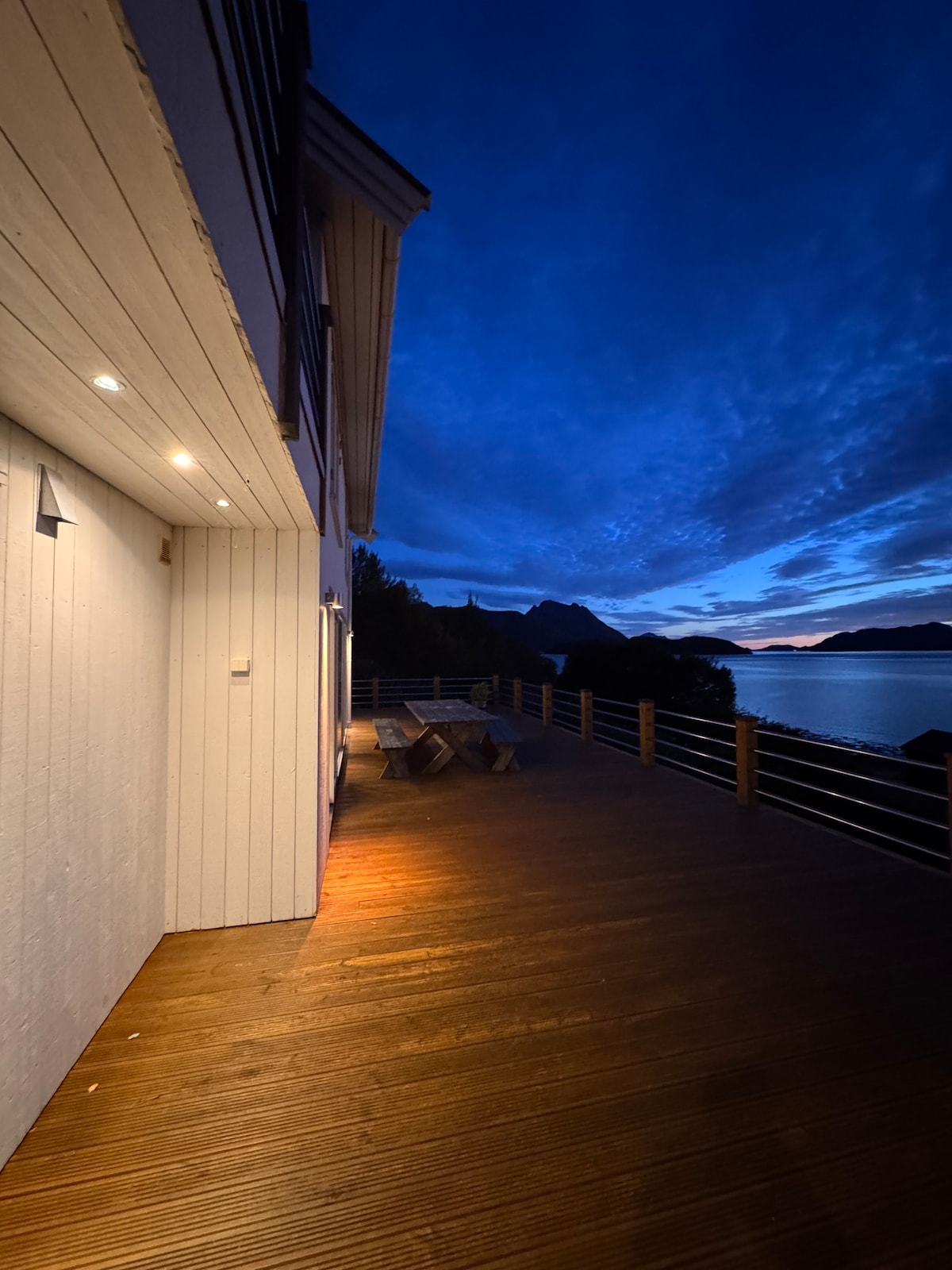 Lad batteriene på dette unike og rolige overnattingsstedet. Hytta har en spektakulær beliggenhet med utsikt mot de kjente øyene Lovund, Træna, Tomma, Lurøy og de 7 søstre. Hytta ligger på fastlandet bare 1 times kjøring fra Mo i Rana og 3 min fra fergeleiet og hurtigbåtkaia som tar deg ut til øyene. Umiddelbar nærhet til strand hvor det er muligheter for kiting, padling, dykking o.l. I tillegg er det nydelige turområder og fjell i alle retninger. Hytta ble bygd i 2023.