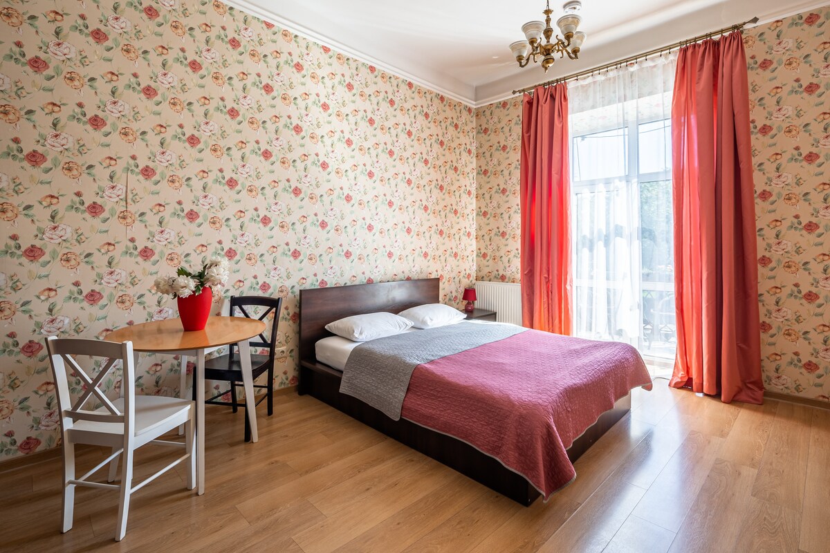 Dzīvoklis atrodas pašā centrā, netālu no Operas. Istabā ir 4 logi, istaba ir gaiša, divguļamā gulta (160/200) ar ortopēdisko matraci, izvelkams dīvāns, drēbju skapis. Jauns kapitālais remonts tika veikts 2021. gada aprīlī. Tieši pie dzīvokļa atrodas lielveikals. Elektriskā apkure, boileris, apsildāmā grīda virtuvē un vannasistabā. Wi-Fi, TV (smart-tv)