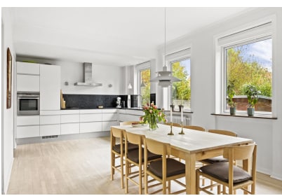 Lielisks villas dzīvoklis 100 m2 platībā pirmajā stāvā. 3 skaistas istabas un lauru logs birojam. No virtuves varat doties tieši uz segtu terasi. Liela vannasistaba ar dušu, veļas mašīnu un žāvētāju. Tajā ir augsti griesti un daudz gaismas, visu dzīvokli ieskauj koki un apstādījumi. Jauks liels dārzs. Sorgenfri pils dārzs atrodas tieši pretī mājai. Daudz skaistu pastaigu. Tuvu iepirkšanās vietai Privāta autostāvvieta Sorgenfri stacija - 500 m Lyngby pilsēta - 3 km