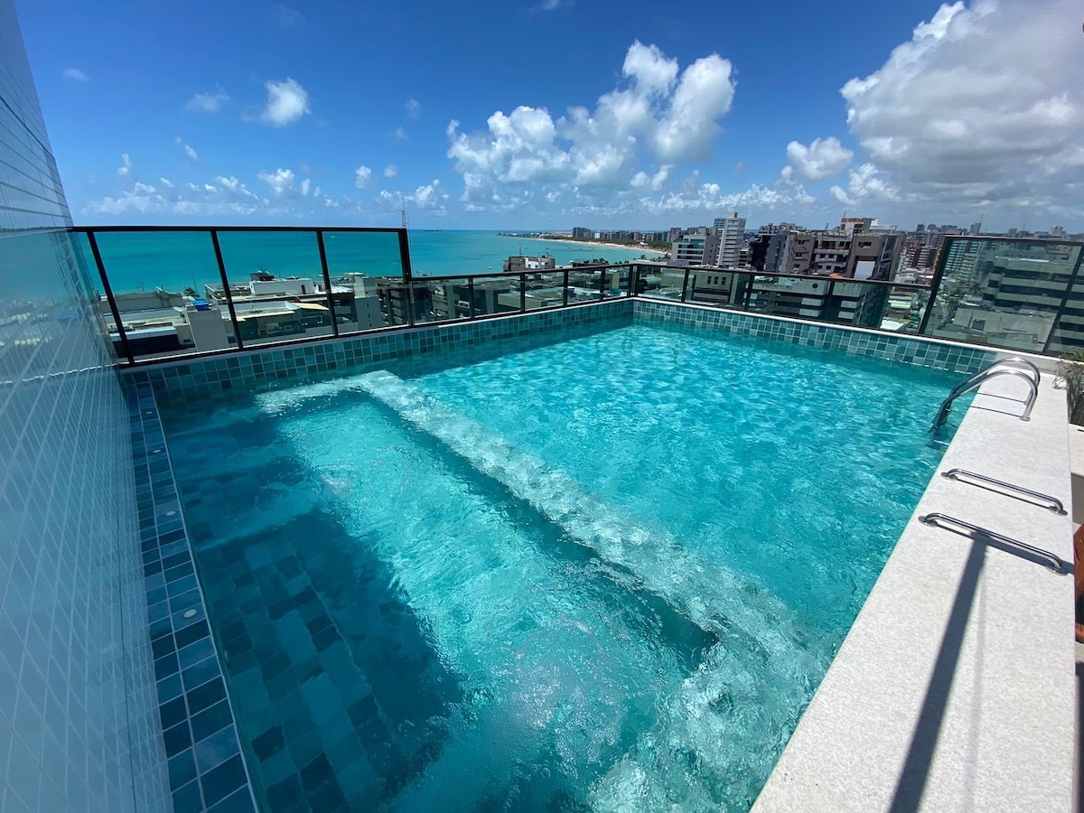 Iepazīstināsim jūs ar labāko, ko piedāvā Maceió! Pamostieties no skaistākā skata uz jūru Pajuçara, kas ir viena no skaistākajām pludmalēm Maceió! Nepārspējama 🎡 atrašanās vieta! Mēs esam tikai soļu attālumā no jaunā Maceió Ferris Wheel! Kāja pa smiltīm, vērsta uz dabiskajiem baseiniem, amatniecības paviljonu un lieliskiem restorāniem. Pilnībā aprīkota studija ar "queen" izmēra gultu, dīvāngultu, aprīkotu virtuvi un balkonu ar skatu uz jūru. Daudzdzīvokļu māja ar bezgalības baseinu uz jumta, saunu, fitnesa centru, spēļu istabu un spa.