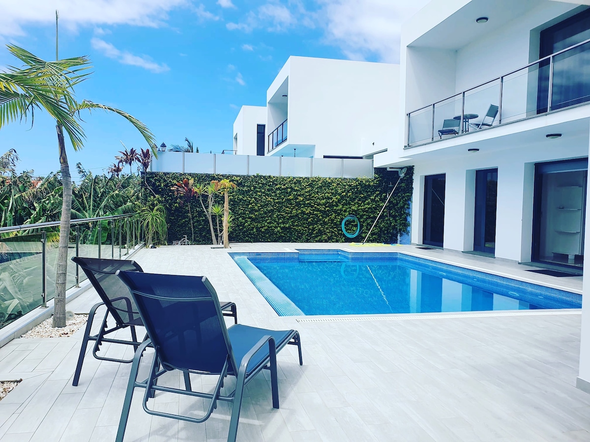 Šī brīnišķīgā, modernā, privātā villa Miradouro da Baleia (vaļu vērošanas tornis) piedāvā dažus no labākajiem okeāna un kalnu skatiem uz salas, ar panorāmas baseinu, kas atrodas augstākās kvalitātes vietā, ko ieskauj iespaidīgas klintis, kultūraugu audzes, banānu stādījumi un vīna dārzi. Tā tika rūpīgi un gaumīgi atjaunota/būvēta 2018. gadā, piedāvājot unikālu pieredzi Portugāles vasaras stila naktsmītnē!