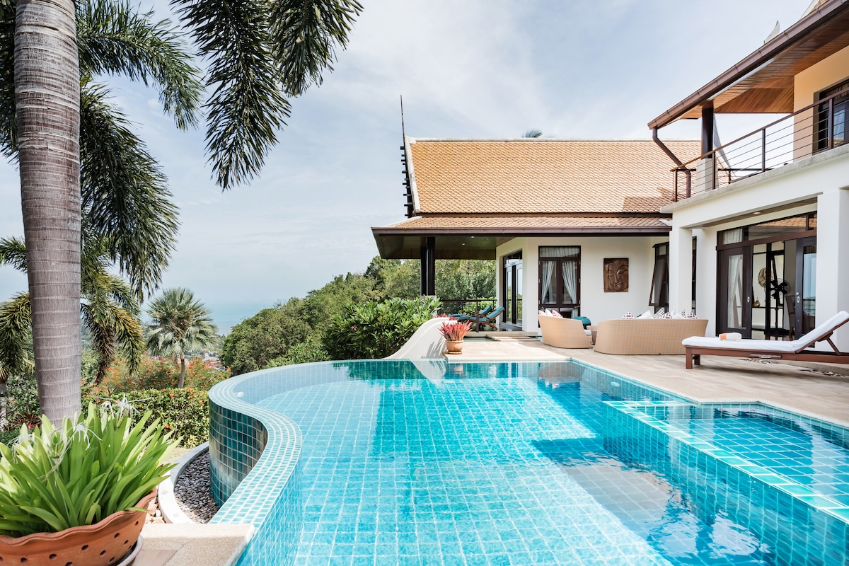 Samui 3 guļamistabu villa ar skatu uz jūru un baseinu un labāko saulrietu