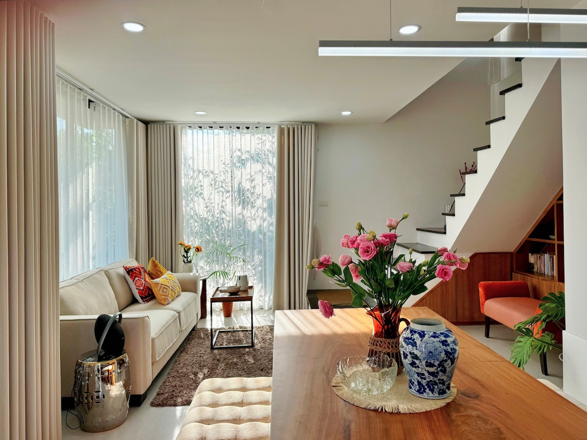 Mierīga un minimāla atpūta tikai 15 minūšu attālumā no Čhīanmai centra. 🌿 • Gaišas, mājīgas telpas ar augstu jumtu un atvērtu dizainu • Tīkkoka koka mēbeles un japāņu iedvesmota vienkāršība • King izmēra gulta, ātrs Wi-Fi un vieta atpūtai vai darbam • Ideāli piemērots pāriem, atsevišķiem ceļotājiem vai nelielām ģimenēm 👉 3 viesiem ir paredzēts augstākās kvalitātes matracis ar pilnu gultasveļu mierīgam miegam (tikai tad, ja tas ir rezervēts 3 personām).