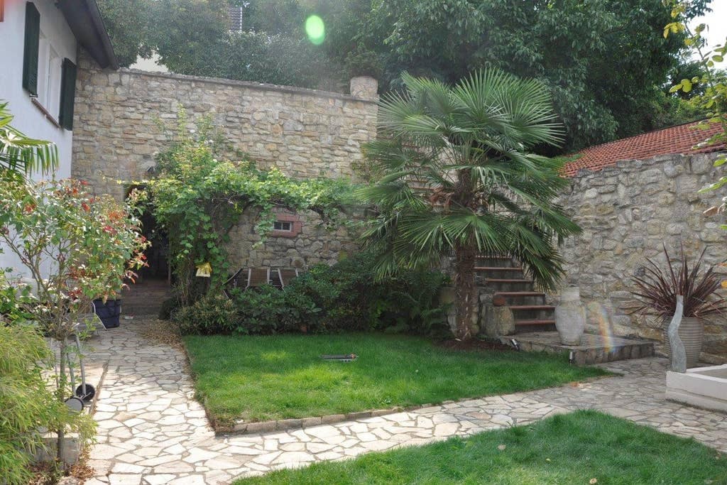 Bechtheim (pop. 1800) vīna ciemata centrā, uz dzīvojamā ceļa, kurā gandrīz nav satiksmes, ir atjaunota bijušās vīna darītavas laukstrādnieka māja. Virtuve ir mūsu mazais muzejs, bet to var arī izmantot. Otrajā stāvā ir divas guļamistabas (viena ar divguļamo gultu, otra ar divām vienvietīgām gultām) un vannasistaba. Mums nav televizora! Bet mums ir skaists dārzs, kas pieejams 10 metru attālumā pāri pagalmam (koplietošanā līdz plkst. 22:00).