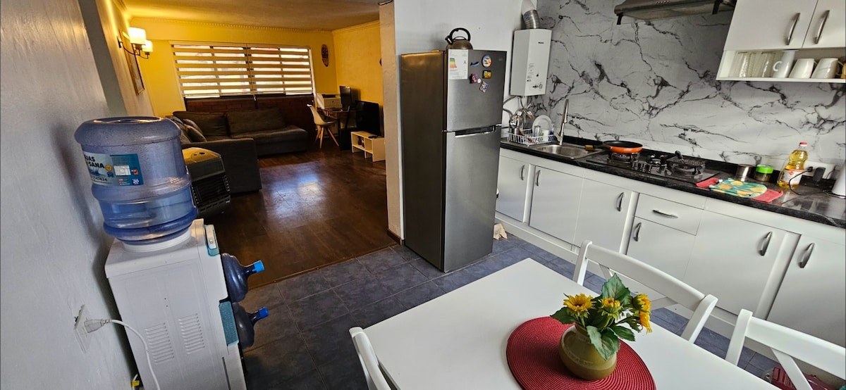 Izbaudiet mūsu ērto 2 guļamistabu, 2 vannu dzīvokli, kas atrodas tikai 10 minūšu attālumā no Santjago starptautiskās lidostas. Ideāli piemērots ceļotājiem, kas atrodas pie Clínica Indisa un Arauco Maipú Mall, ar ērtu piekļuvi veikaliem, restorāniem un medicīnas pakalpojumiem. Ātri savienots ar Ruta 68, Autopista del Sol un Costanera Norte, ļaujot dažu minūšu laikā iepazīt Santjago un tuvējos rajonus. Mēs piedāvājam arī autostāvvietu ēkas iekšpusē, ātru Wi-Fi, gaisa kondicionētāju un pilnībā aprīkotu virtuvi.