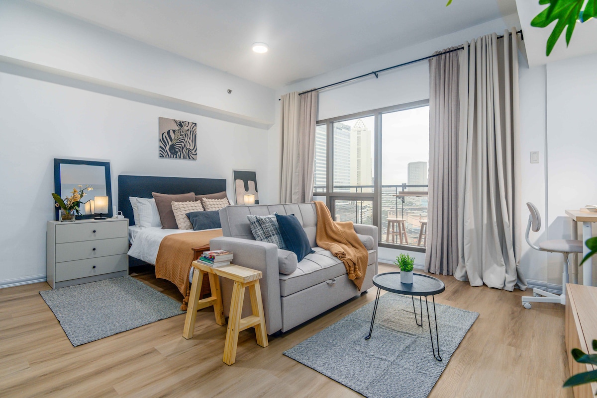 MABUHAY! Neatkarīgi no tā, vai dodaties darījumu braucienā, apmeklējat ģimeni vai ceļojat pa Āziju, varat neturpināt. Kas kādreiz bija vienas guļamistabas dzīvoklis, tagad ir pārveidots par plašu lielu studijas tipa dzīvokli (četrdesmit astoņi kv. m!). Atrodoties vienā no augstākajām dzīvojamajām ēkām Filipīnās, tā var būt jūsu otrās mājas. Ja jūsu izvēlētie datumi ir rezervēti, varat apskatīt arī citas mūsu pārvaldītās studijas manā profilā!