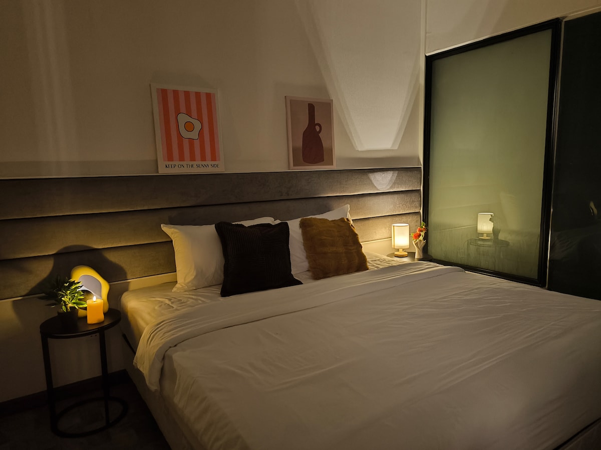 Kāpēc palikt The Palm's Junior Suite at Lucentia Residence - KL skati - skaisti iekārtots ar jautru garu - atrodas centrā - sabiedriskā transporta tuvumā - ātrs Wi-Fi - TV ar Netflix, Apple TV, Prime Video - 2 krāšņi baseini - sporta zāle, biljarda galds, grila bedres, paino - supersaimnieka vadītājs - autostāvvieta garāžā - ieteicams 2 personām, maks. var gulēt 3 - LaLa Port iepirkšanās centrs un izklaides iela ir pievienota - ir pievienota pārtikas preču veikals, aptieka un daudzi restorāni - kinoteātris Gsc blakus