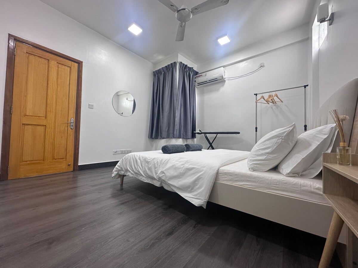Laipni lūdzam jūsu mājoklī ārpus mājām! Šis stilīgais un ērtais dzīvoklis atrodas pašā Hulhumale sirdī, piedāvājot nevainojamu modernu papildērtību un vietējā šarma apvienojumu. Kas jums patiks: - Plašs un pārdomāti iekārtots interjers relaksējošai atpūtai. - Pilnībā aprīkota virtuve jūsu iecienītāko maltīšu pagatavošanai - Ātrgaitas Wi-Fi un viedtelevīzija izklaidei - Pastaigas attālumā līdz pludmalei, kafejnīcām, restorāniem un vietējiem veikaliem. Rezervējiet tūlīt un izbaudiet Hulhumale kā vietējie!