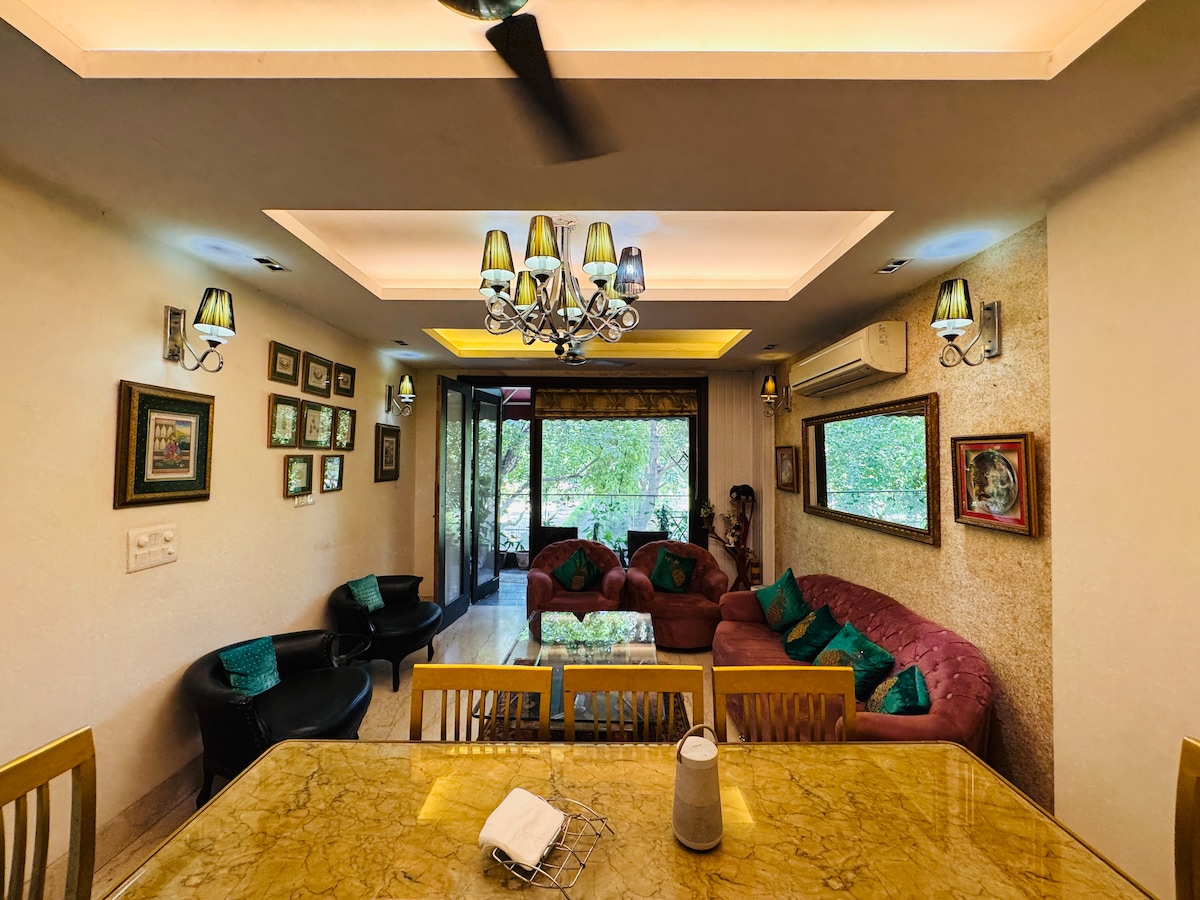 Mūsu divu guļamistabu dzīvoklī valda patiesa pilsētas sajūta. Tas ērti der četriem. Viss dzīvoklis būs jūsu rīcībā — skaists dārzs, labi aprīkota virtuve un mājīga studija. Dzīvoklis nodrošina ērtu piekļuvi vēsturiskajam Qutab Minar kompleksam, dažādiem parkiem un iepirkšanās centriem ar restorāniem un kinoteātriem. Tas atrodas arī pastaigas attālumā no Max un Max Smart Super Speciality slimnīcām. Pārvietošanās ir ērta, izmantojot metro (dzelteno līniju) tikai divu minūšu gājiena attālumā.