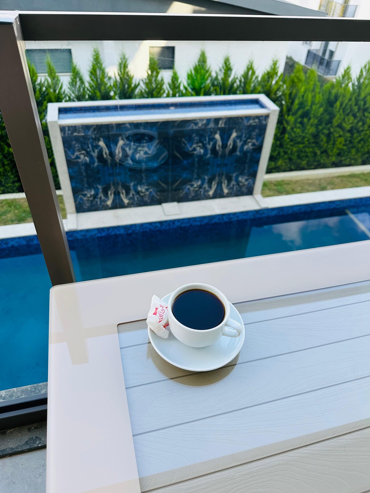 skaists dzīvoklis ar skatu uz baseinu ideālā kompleksā, kurā ir divi lieli baseini visos numuros ir gaisa kondicionētājs ir ļoti ērts stūra komplekts ar divguļamo gultu un divguļamo gultu un dīvānu un kafijas stūrīti, kas var būt vienguļamā gulta uz balkona filtrēta kafija, turku kafija un kapsulu kafijas automāts, sulu spiede, pārtikas kombains, blenderis, mikseris, tējkanna, tosteris, gaisa filtrs visi sadzīves piederumi, virtuves piederumi, dvieļi, gultasveļa
