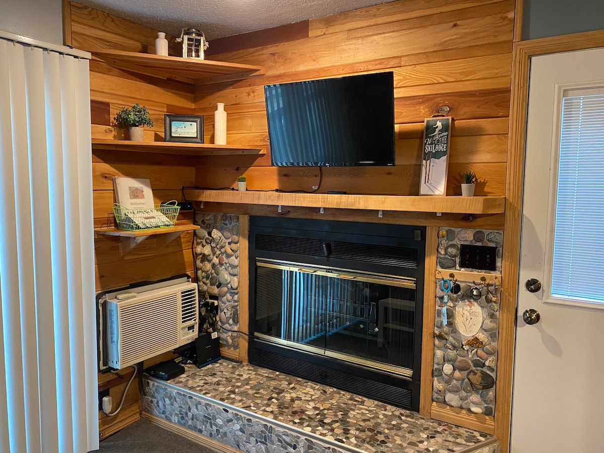Šajā 1 guļamistabas, 2 gultu, 1 vannasistabas 605 kvadrātpēdu dzīvoklī ir 4 guļamistabas, un tas atrodas Samita ciematā. Dzīvoklī ir pilnībā aprīkota virtuve, malkas kamīns, divguļamā dīvāngulta un privāta terase, no kuras var baudīt satriecošus saulrietus Bellairas ezerā. Jūsu ceļojums ietver piekļuvi kūrorta vairākiem iekštelpu un āra baseiniem un iekštelpu burbuļvannai. Mūsu dzīvoklis atrodas īsas pastaigas attālumā no Samita golfa laukuma, Šantī pilsētas un restorāna Lakeview. Uzturēšanās šeit nozīmē, ka esat pašā Shanty Creek Resort sirdī!