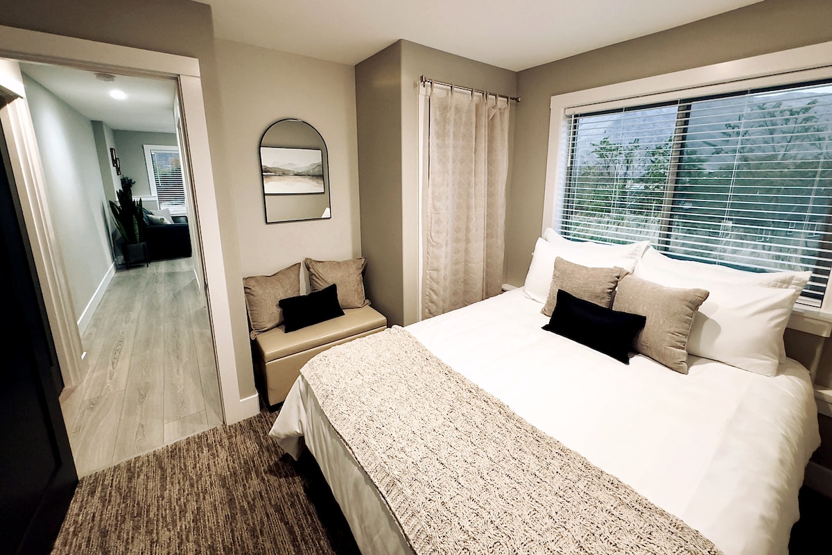 Gaišs un skaists 1 guļamistabas / 1 vannasistabas dzīvoklis. Dzīvoklī guļ četri viesi. Cena par nakti ir balstīta uz diviem viesiem. Papildu viesus, kas vecāki par 12 gadiem, var pievienot par 15+ $ par viesi. Šī ēka atrodas pilsētas centra vidū, un no tās paveras skats uz Frontstrītu un Kaskādes kalnu grēdu. Šis dzīvoklis atrodas trešajā stāvā un ir pieejams tikai pa kāpnēm. Dzīvoklis ir piemērots mīļdzīvniekiem, taču mēs iekasējam vairāk nekā 25 $ nodokli par mīļdzīvnieku par nakti.