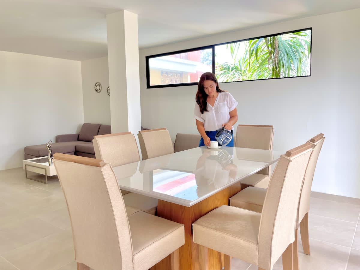 Dzīvoklis ir neatkarīgs, ērts, tīrs, viegli pieejams . Viņi varēs izmantot ārēju dārzu un dzīvojamo zonu zem kokiem. Atrašanās vieta ir stratēģiska: divi kvartāli no Klusā okeāna tirdzniecības centra un divi kvartāli no El Murciélago pludmales. Izveidojiet savienojumu ar Ave. Flavio Reyes ir bāri, restorāni, lielveikali, frizieri un plašas ietves pastaigām. Nozare ir droša un vienlīdz tālu no pilsētas centra.