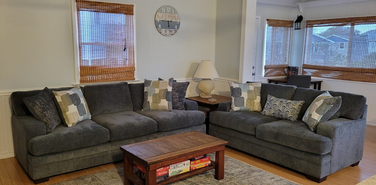 Enjoy your OBX vacation at this cozy beach cottage. There is a large combined family room, modern kitchen, and dining area with plenty of comfortable seating, a 55" Smart TV and access to our YouTube TV subscription and high speed Wi-Fi. There is a private screened porch, with access from the living area and the master bedroom, that includes a picnic table for outdoor covered dining and a lighted seating area. Tortugas' Lie, a great local beach bar and restaurant, is a short five minute walk.