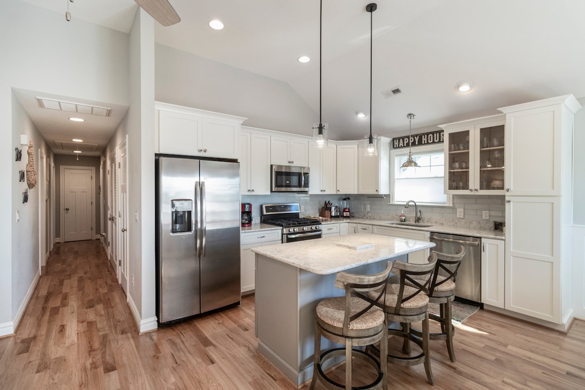Izbaudiet relaksējošu uzturēšanos mūsu skaisti iekārtotajā viena līmeņa rančo stila mājoklī. Šis divu guļamistabu un divu vannasistabu mājoklis ar elegantiem un grezniem nobeiguma akcentiem ir ideāla vieta, kur apmesties Kill Devil Hills sirdī, kas atrodas mazāk nekā jūdzes attālumā no okeāna un netālu no dažām no labākajām vietējām ēstuvēm un veikaliem šajā reģionā ✓ 5 min brauciena attālumā no brāļu Raita nacionālā memoriāla ✓ 3 minūšu brauciens līdz Nags Head Woods rezervātam ✓ 6 min brauciena attālumā no Jockey 's Ridge štata parka Ar nepacietību gaidām iespēju jūs uzņemt!