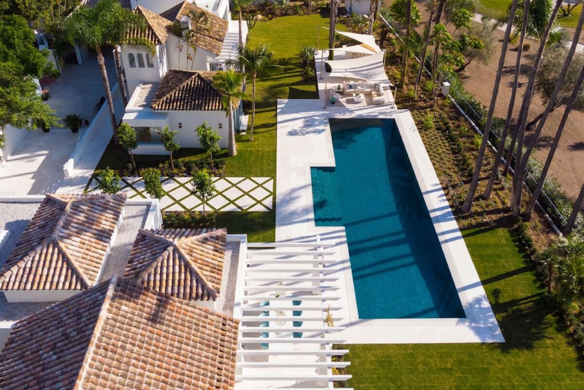This modern Marbella home is mere moments from the golden beach. Listen to the sounds of the vivid Mediterranean lulling in the distance. Inside, sophisticated décor is bathed in sunlight. Dense foliage creates a natural curtain of privacy. The turquoise pool invites you in for a splash. Golf courses are a few minutes away as well as world-famous Puerto Banús. Sip champagne on the rooftop terrace. Copyright © Luxury Retreats. All rights reserved. BEDROOM & BATHROOM • Bedroom 1 - Primary: Double size bed, Ensuite bathroom with stand-alone shower, Walk-in closet • Bedroom 2: Double size bed, Ensuite bathroom with stand-alone shower • Bedroom 3: Double size bed, Jack & Jill bathroom shared with Bedroom 4, Stand-alone shower, Walk-in closet • Bedroom 4: Double size bed, Jack & Jill bathroom shared with Bedroom 3, Stand-alone shower, Walk-in closet FEATURES & AMENITIES • Decorative fireplace • More under “What this place offers” below OUTDOOR FEATURES • Terrace STAFF & SERVICES Extra Cost (advance notice may be required): • Activities and excursions • More under “Add-on services” below