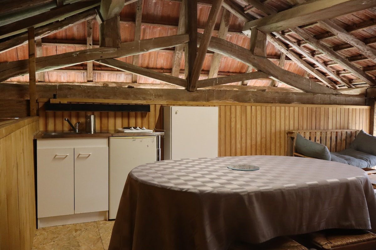 Chalet basé en campagne, venez profiter des bienfaits d’un endroit calme et apaisant. Situé à proximité d’un lac à activités nautiques, à 1h des stations de ski et de l’Espagne et le village à 2km dispose de tous les commerces de proximité. Ce chalet convient pour 2 personnes, avec possibilité d'un lit enfant en plus, avec une pièce à vivre comprenant un lit double place, une kitchenette équipée (plaque électrique, frigo, bouilloire et micro-onde) ainsi qu’une salle de bain avec douche.