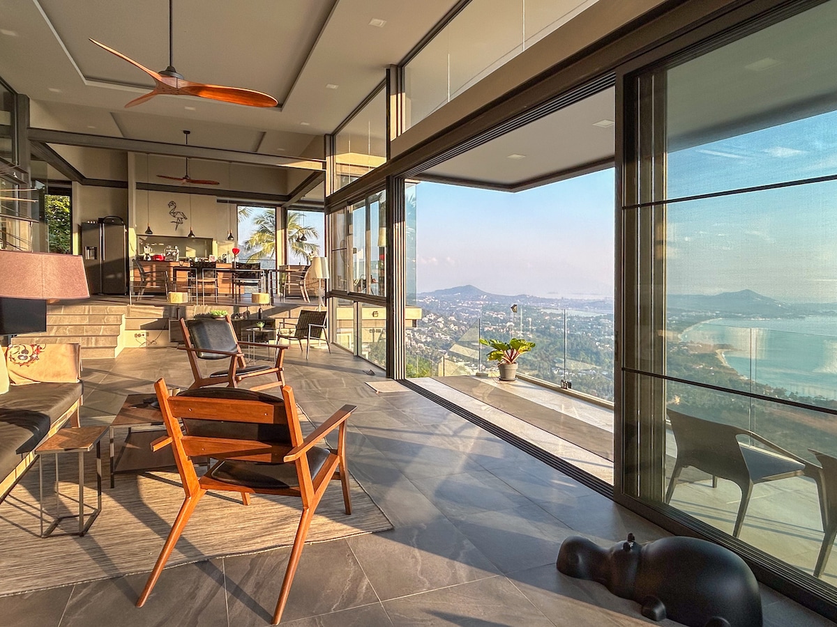 Villa Sea View, kas atrodas Lamai augstumos, sagaida jūs idilliskā vidē ar elpu aizraujošu skatu uz jūru un sulīgajiem Koh Samui apstādījumiem. Šis īpašums, kas atrodas ideālā vietā, tikai 5 minūšu brauciena attālumā no pludmalēm, restorāniem un dzīvīgās Lamai dzīves, apvieno privātumu, modernu komfortu un izcilu panorāmu. Šī mūsdienīgā villa ar plašām, gaišām telpām, kas ir atvērtas no ārpuses, ir ideāli piemērota mierīgai atpūtai