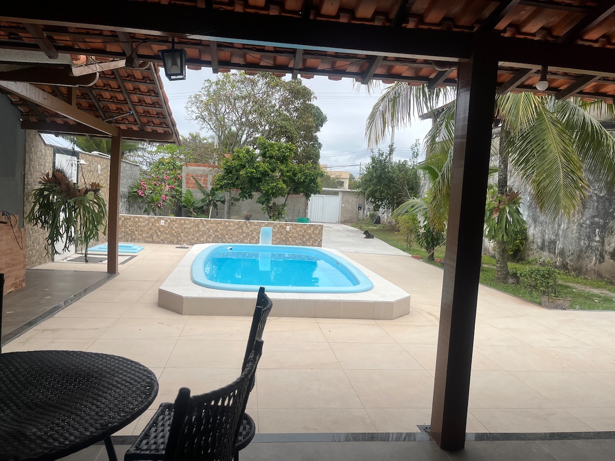 Leve toda a família a está linda casa, estilosa e com muito espaço para se divertir. Casa super confortável, arejada, a 300 metros da praia, pertinho de todo comércio. A casa é totalmente independente, possui 03 quartos sendo uma suíte com ar condicionado, todos os quartos com cama de casal, ventilador de teto, um dos quartos também com sofá cama de casal e uma cama auxiliar , ainda temos colchões de solteiro. Temos uma área externa com piscina, churrasqueira com forno e fogão a lenha.