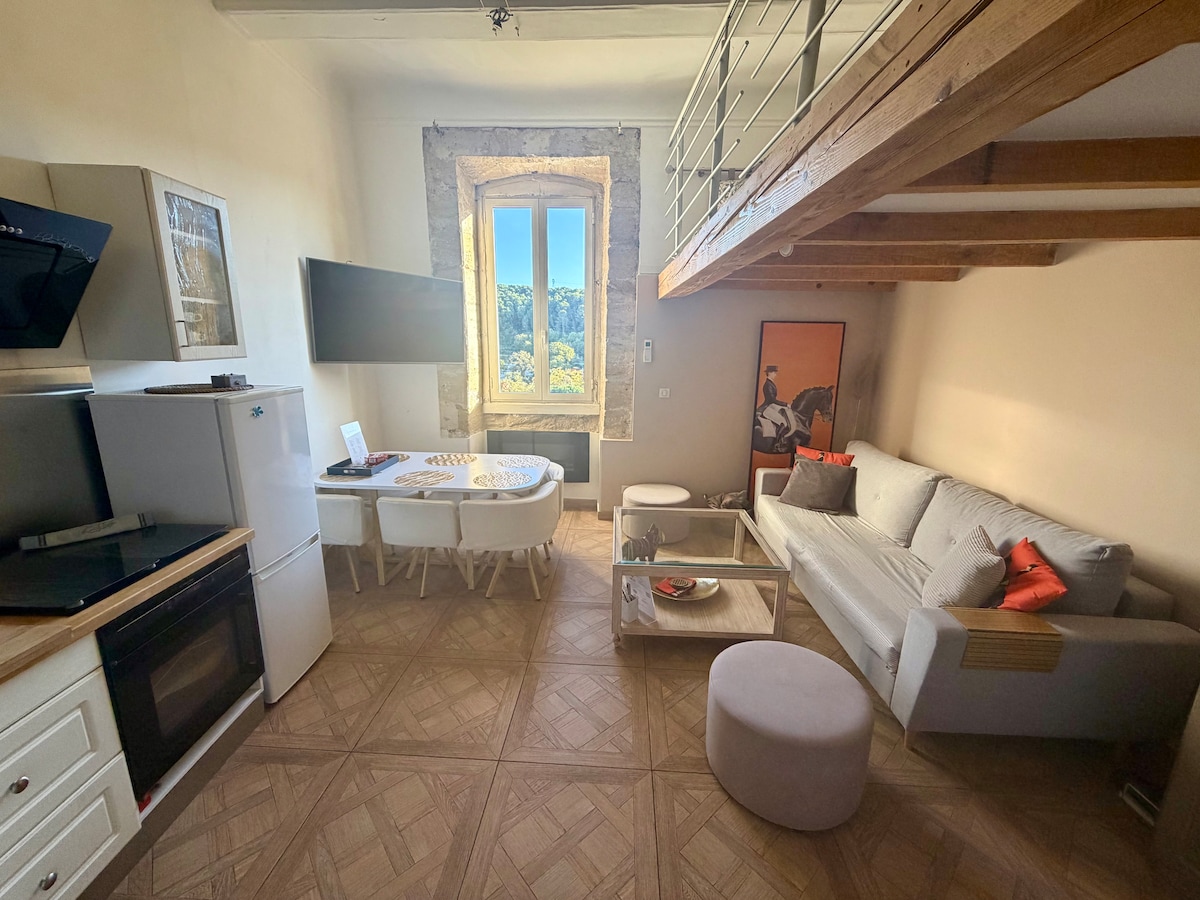 Nogaršojiet saldo dzīvošanu Martigues! Pašā salas gleznainās zonas sirdī, netālu no putnu spoguļa, Mirabeau laukuma balkona, mezonīna istaba ar kvalitatīvu gultasveļu, aprīkota virtuve, gaisa kondicionētājs, bezmaksas autostāvvieta 100 m attālumā. Iespēja īrēt 2 citas neatkarīgas studijas tajā pašā mājā, izmitināt līdz 8 personām. Pludmales un Calanques de la Côte Bleue 10 min, Aix, Marseille, Arles, Avignon mazāk nekā stundas attālumā, TGV un lidosta ir labi apkalpota