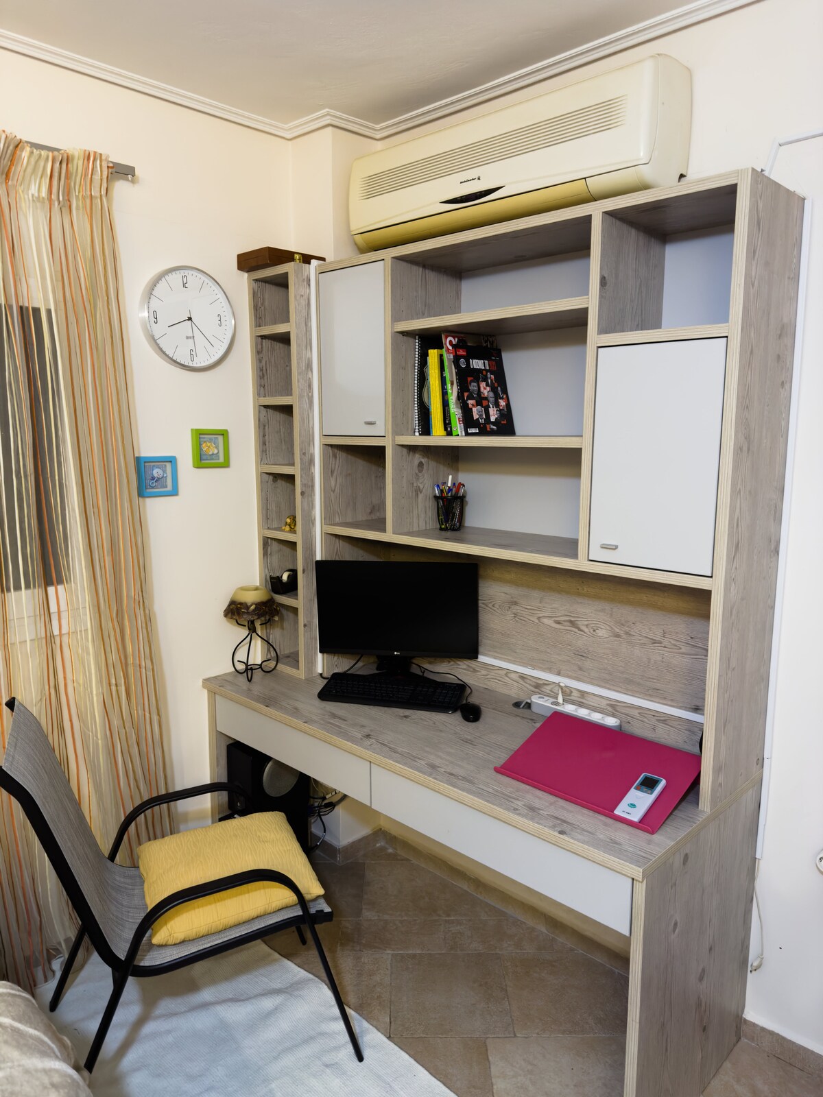 Pilnībā aprīkots studijas dzīvoklis mierīgā apkaimē netālu no visām ērtībām, 3 minūšu gājiena attālumā no autobusa un taksometru pieturām. Tas ir daļa no privāta dzīvokļu bloka, kur saimnieki dzīvo tieši virs. Ir divguļamā gulta (120 cm), kas ir ideāli piemērota pāriem. Ir arī plašs balkons.