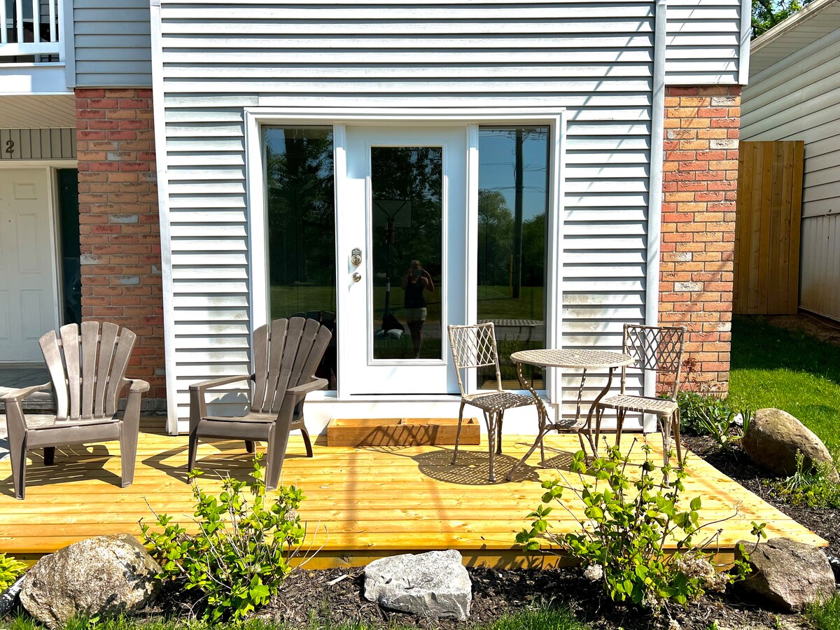 Laipni lūdzam vislabāk glabātajā noslēpumā Niagāras ūdenskritumā, Kanādā! Mēs atrodamies tikai pastaigas attālumā no Tima Hortona, pārtikas precēm, krogiem, alus veikala, peldēšanas, golfa, makšķerēšanas...un tikai 5 km attālumā no ūdenskrituma! Šim gleznainajam dzīvoklim ir moderns kotedžas izskats un atmosfēra, ar plašu privātu autostāvvietu un terasi. Pats labākais - mūsu attālums līdz ūdenskritumiem nozīmē, ka varēsiet izvairīties no tūristu satiksmes.