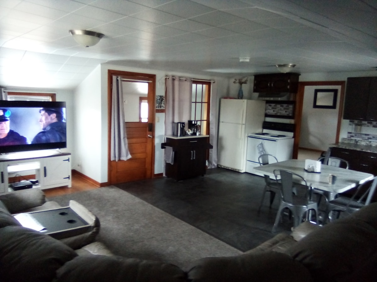 Atpūtieties šajā unikālajā un mierīgajā atpūtas vietā. Jūs ieradīsieties šajā mierīgajā galamērķī un izbaudīsiet visu skaistumu un mieru, ko piedāvā mājoklis. Nekad nav jādodas uz zivīm 🎣 Izbaudiet visas mazās lietas, ko dzīve ir, lai piedāvātu. Tas ir Mesmerizējošs... iestatījums ir tik elpu aizraujošs. Šis namiņš atrodas tikai 4,4 jūdžu attālumā no Potawatomi štata parka un tikai 1,21 jūdzes attālumā no Roberta Karmodija laivas nolaišanas 🤩 viļņa punkta bāra/vakariņu kluba tepat blakus.