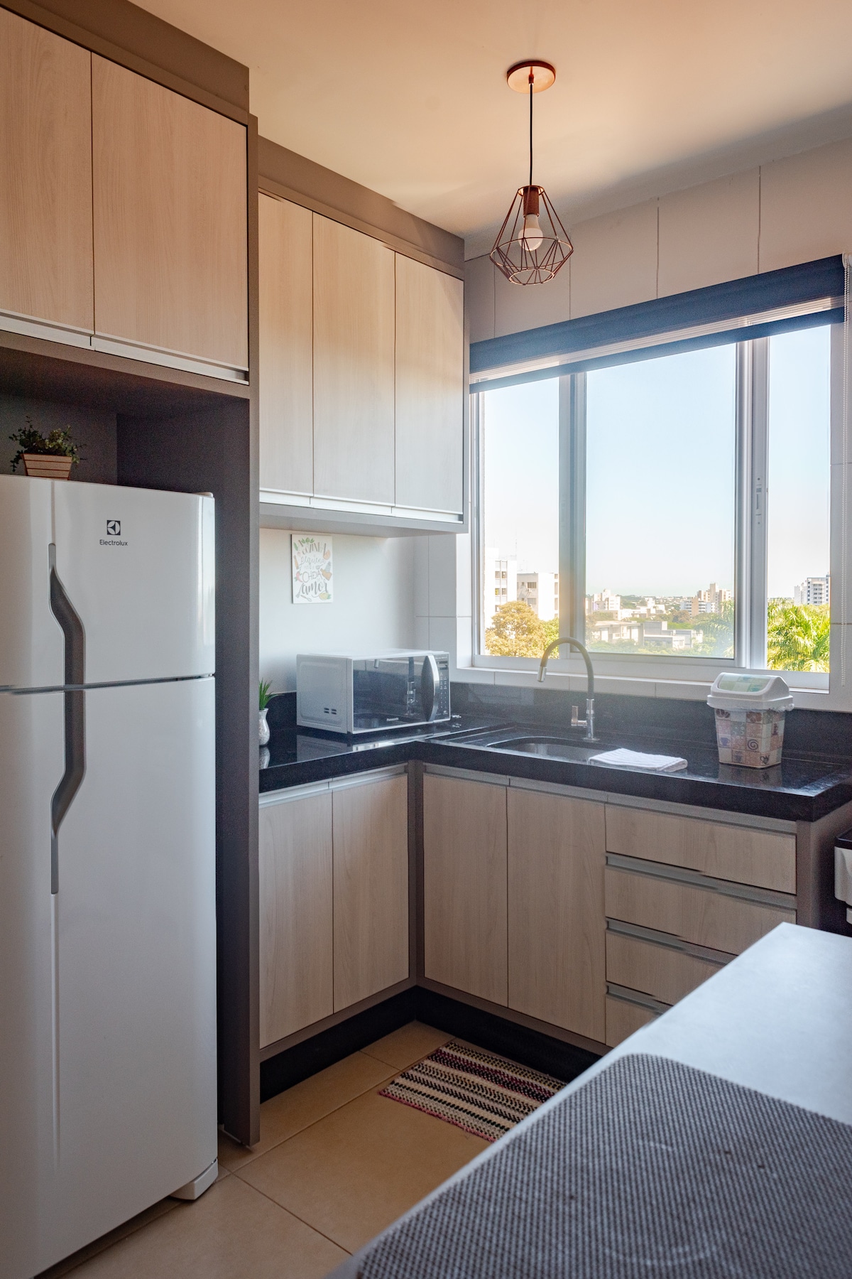 Laipni lūdzam jūsu sapņu dzīvoklī! Ideāli piemērots tiem, kuri vēlas baudīt unikālu pieredzi Maringā. Izsmalcināts dizains, absolūts komforts un iekārtojums, kas liek justies kā žurnāla fotosesijā. ✨ Aktualitātes, kas jums patiks: Gleznains skats uz pilsētu PILNĪGI aprīkota virtuve ar jaunām ierīcēm: plīts virsma, mikroviļņu krāsns, tirkīzzils retro ledusskapis un pat veļasmašīna un žāvētājs Ar ainavisku apgaismojumu, lielu televizoru, dīvānu un divguļamo gultu, jaudīgu gaisa kondicionieri Spilgti pilsētas mākslas darbi, kas padara vidi unikālu