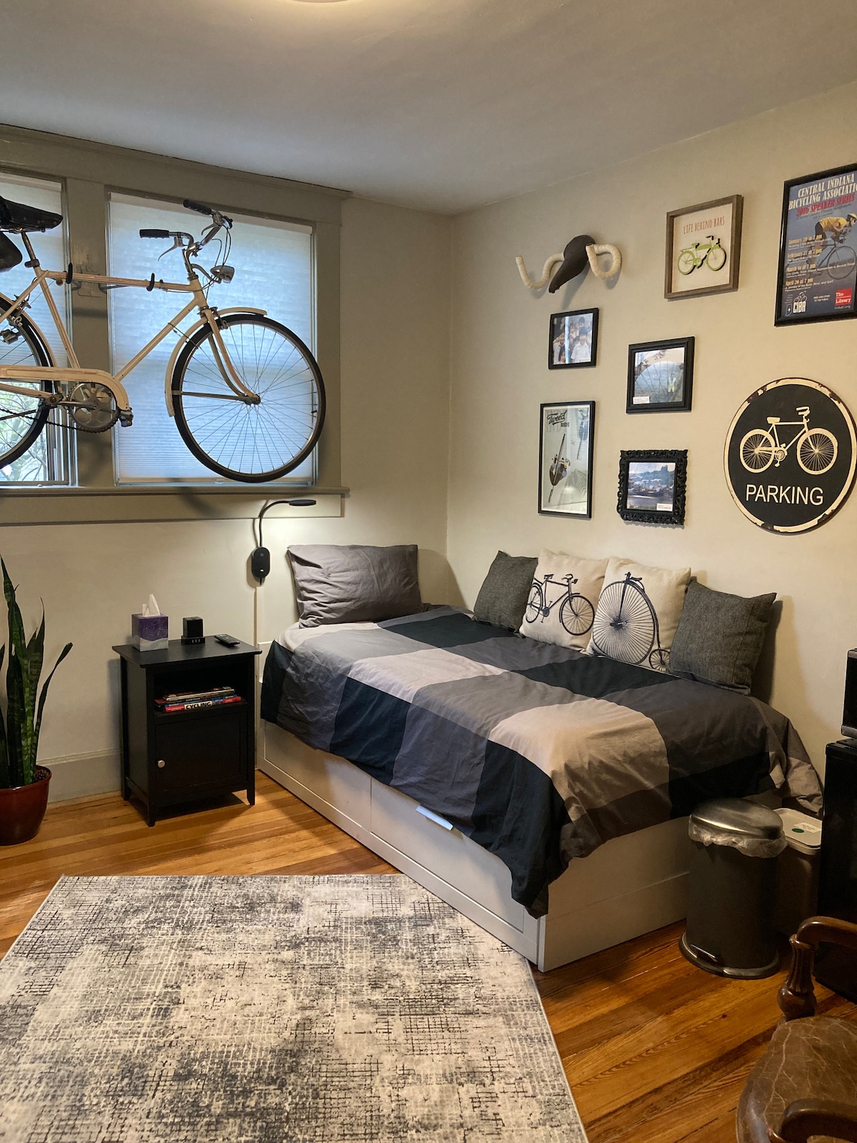 Elegants lofts ar milzīgu otro stāvu pašā Strūklaku laukuma sirdī. Tikko izremontēts. Privāta ieeja. Luksusa gēla atmiņas putu divguļamā gulta, plīša spilveni, augstas kvalitātes gultasveļa. 2 atsevišķas gulēšanas iespējas. Ātrgaitas optiskais internets, 60collu viedtelevīzija, krāšņa vannasistaba un virtuvīte. Atpūtieties uz privāta klāja ar skatu uz siluetu! Gainbridge Fieldhouse - 1 jūdze (18 minūšu gājiens) Lucas naftas stadions - 1,2 jūdzes (24 minūšu gājiens) Hi-Fi - 0,4 jūdzes (7 minūšu gājiens) Mass Ave. - 1,4 jūdzes (30 minūšu gājiens)