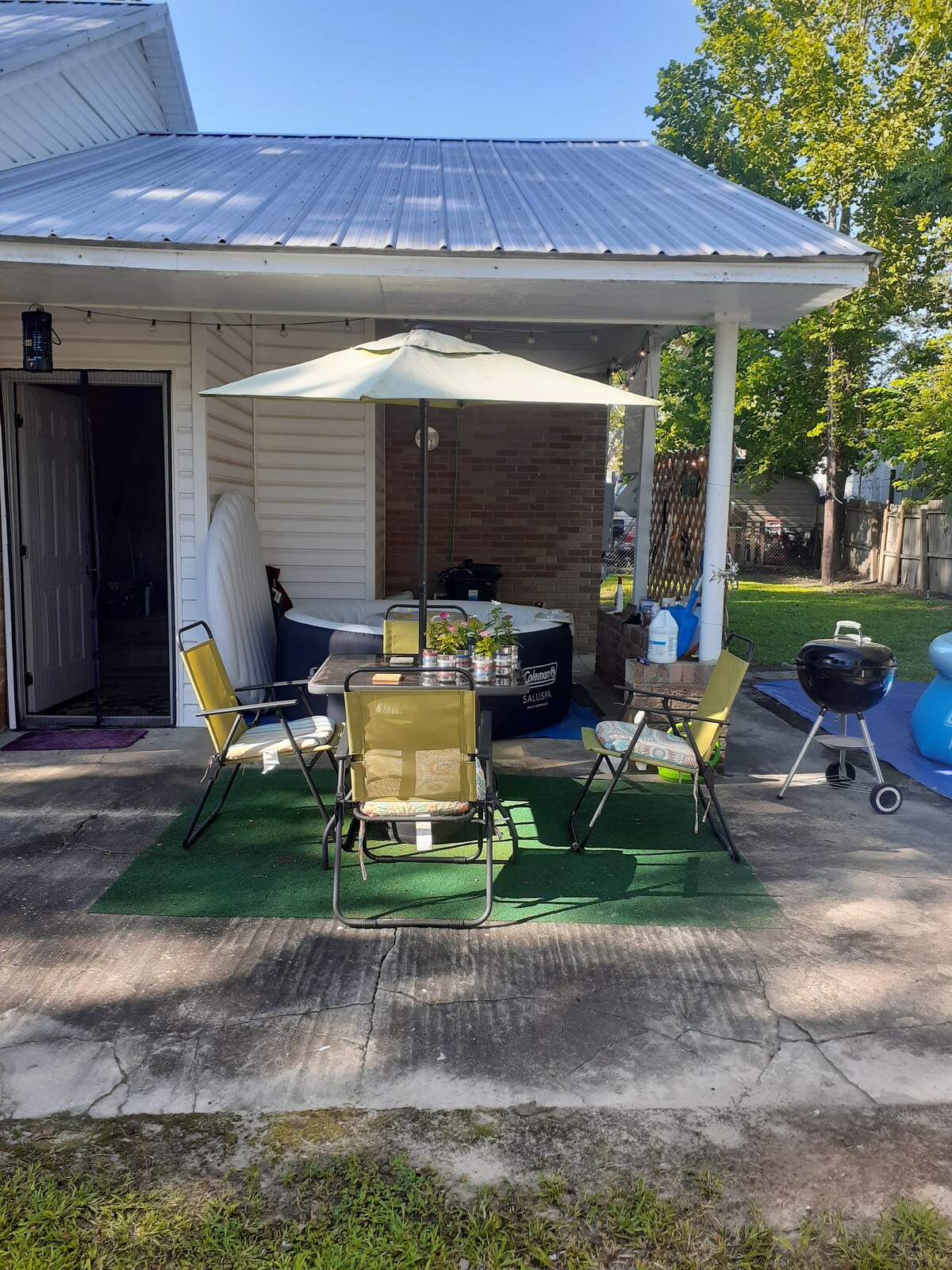 Newly remodel poolside escape. 1100 sq feet with 3 indoor TVs, 1 outdoor tv, and a foosball table. The house has a full bathroom, kitchen, and living area. It has a king bed, sleeper sofa, and couch (air mattresses available upon request) Stainless steal appliances and access to a 35 foot in ground pool with a splash pad and 6 foot deep end. Within 15 minutes of multiple wedding venues. Within an hour drive to Myrtle Beach. 30 minutes from I-95.