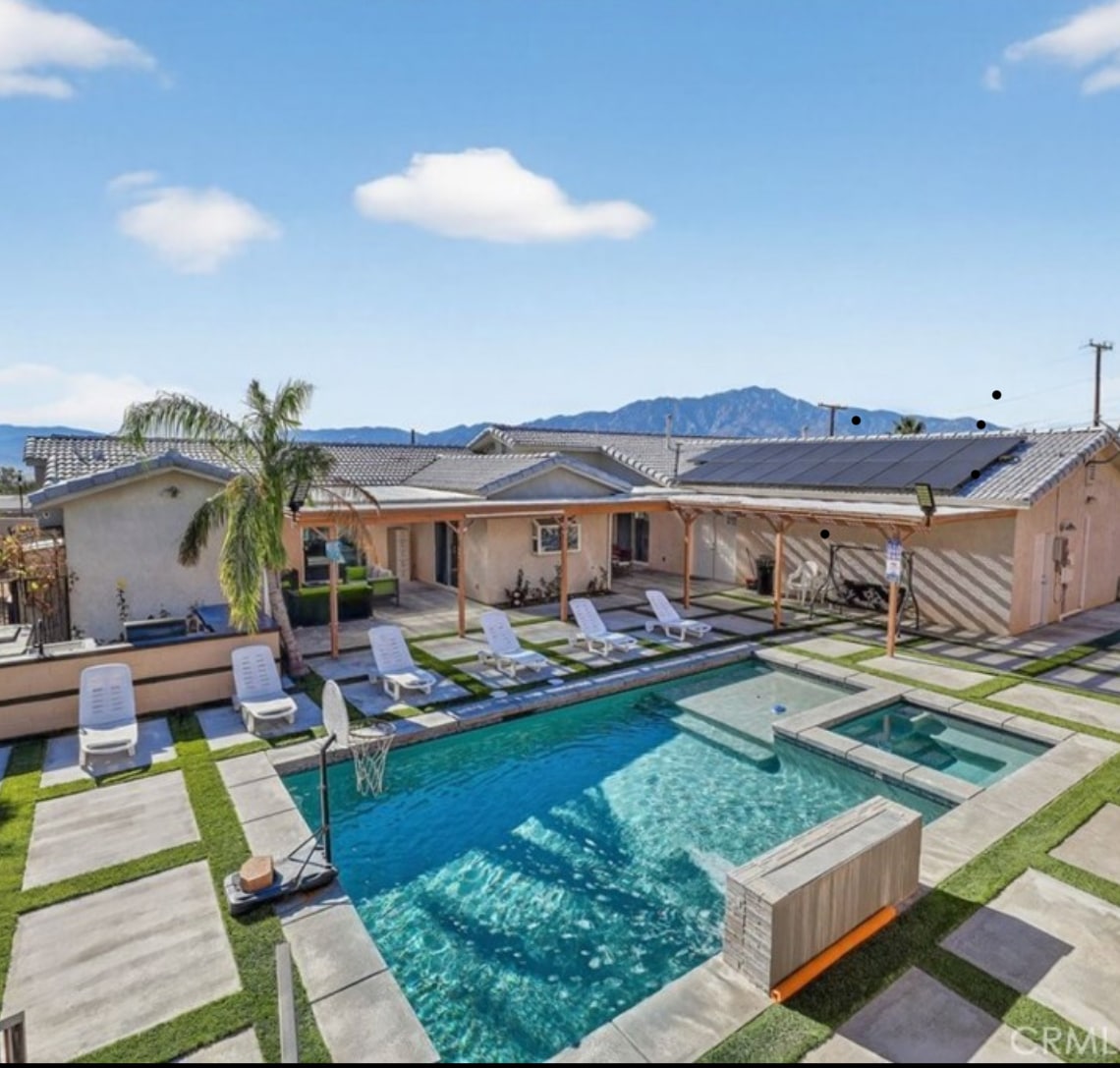 3 bedroom 2 bath home with extra queen pull out sofa and huge backyard Sleeps 8 people Amenities include: Salt Water pool and hottub spa huge Outdoor Movie Theatre Fire pit BBQ outdoor dining for 6 Outdoor Ping Pong Table Resort Style String lights chaise lounges Daybed Game room: Pool table arcade games: golden tee, mortalcombat,street fighter dart board mini basketball arcade ring hook game shuffleboard 15 minutes to palm springs town restaurants 10 minutes to Coachella Festival Great Golf