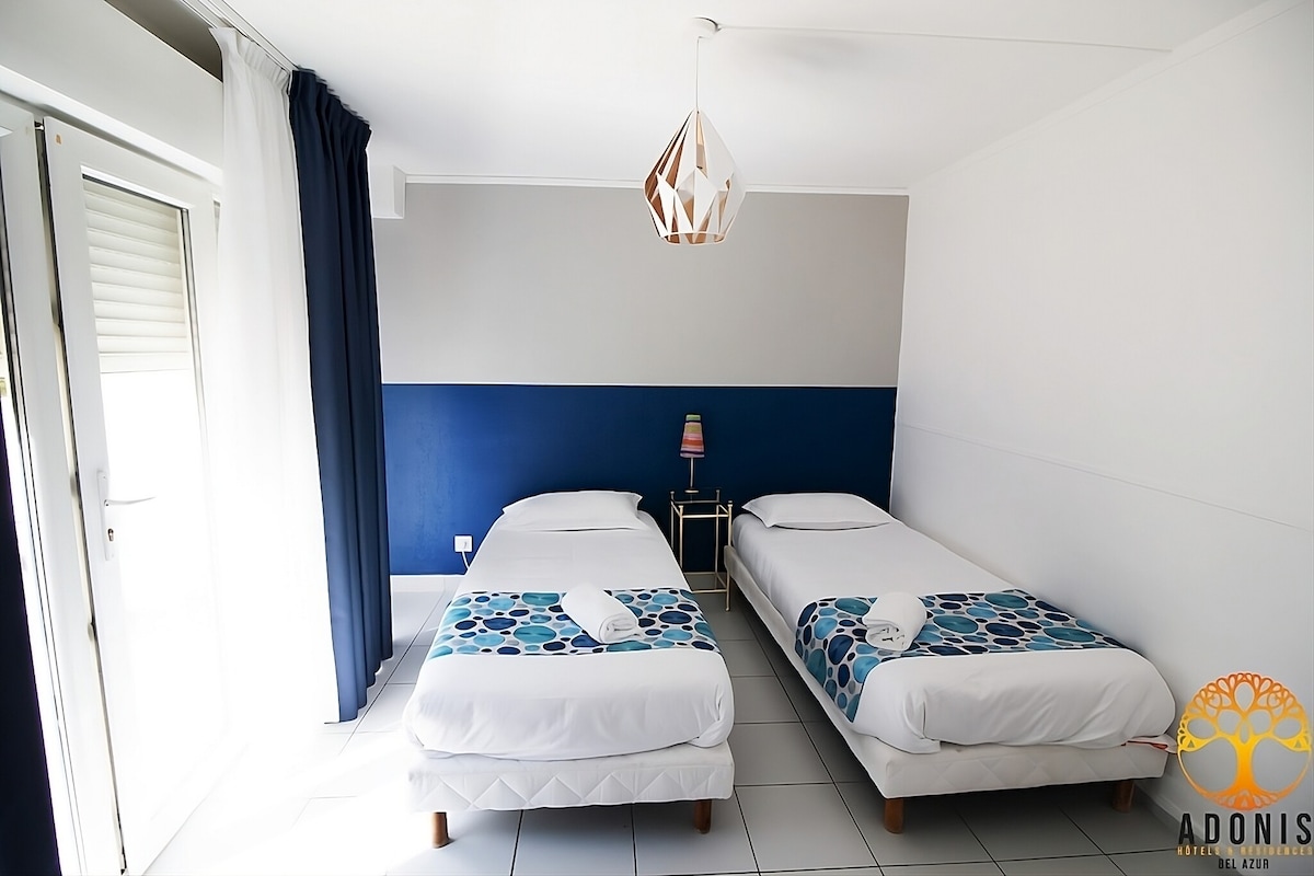 Apburošs 3 zvaigžņu Hôtel, kas atrodas pilnā Marseļas centrā, ar ērtu piekļuvi galvenajai pludmalei. Atrodas tikai 10 jūdžu gājiena attālumā no vecās ostas un tikai 15 minūšu attālumā no Stade Velodromas (2 metro stacija tikai veido Hôtel). Aicinām jūs izbaudīt mieru šajā saulainajā istabā, kas atrodas pilnajā Marseļas centrā. Istaba ir aprīkota ar divām mierīgām vienguļamām gultām, kuru izmērs ir 90 cm x 200 cm, ar segu. Parketa grīda sniedz šai istabai siltu atmosfēru; istaba ir aprīkota arī ar galdu, vannasistabu ar vannu,gaisa kondicionieri , centrālo apkuri un lielu skapi ar plauktu. Bezmaksas WI-FI un televizors ir pieejami visās telpās. Televizors ar starptautiskiem kanāliem Mums žēl, bet varam informēt klientus, ka šī istaba nav pieejama viesiem ar invaliditāti.