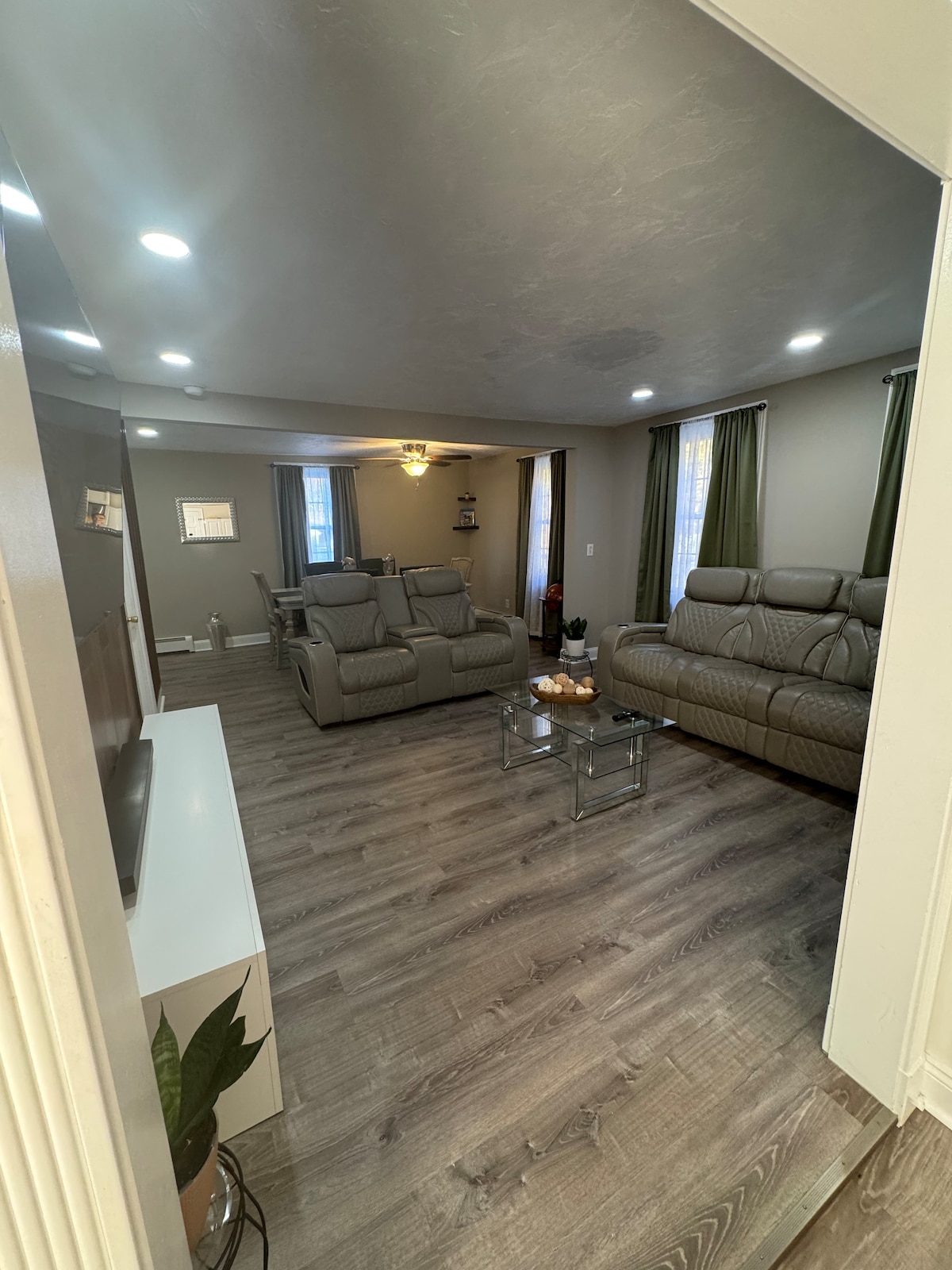 Welcome to our stylish East Boston condo! Just a 5-minute walk to the Blue Line and 11-minute drive (or 25-min walk) to Logan Airport. Only two blocks from the waterfront with stunning Boston skyline views. This modern farmhouse retreat features two cozy bedrooms plus two more beds downstairs. The sleek kitchen and dining area are great for meals or morning coffee. Relax in the comfy living room or enjoy movie nights on the 135-inch home theater. Includes in-unit laundry and off-street parking.