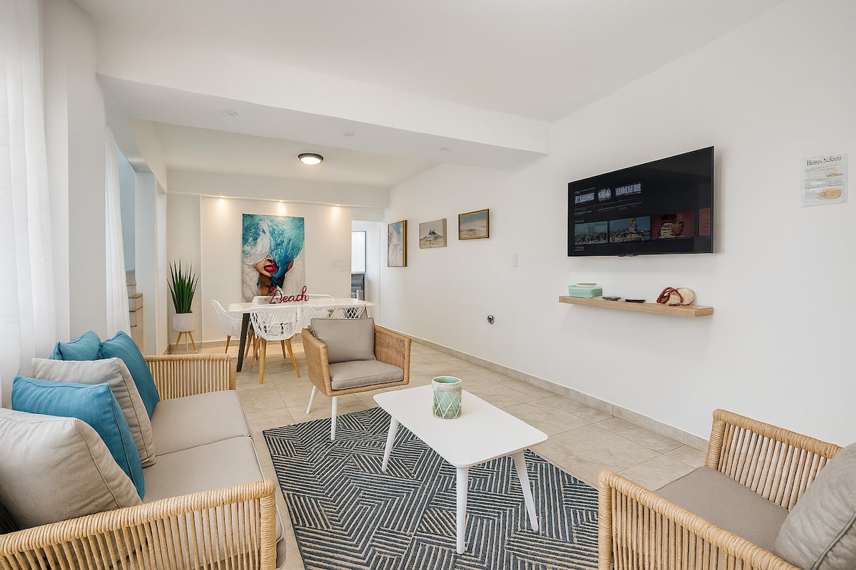 Renovated apartment with everything you need to serve yourself and just relax, unwind, and have a wonderful stay. Located in front of Playa Azul beach in Luquillo, an area for swimmers where you can relax in the sun. Enjoy breathtaking views on the balcony. Near to restaurants, bars, shops and near to many places to explore Puerto Rico! Accommodates up to 4 adults and 2 children.