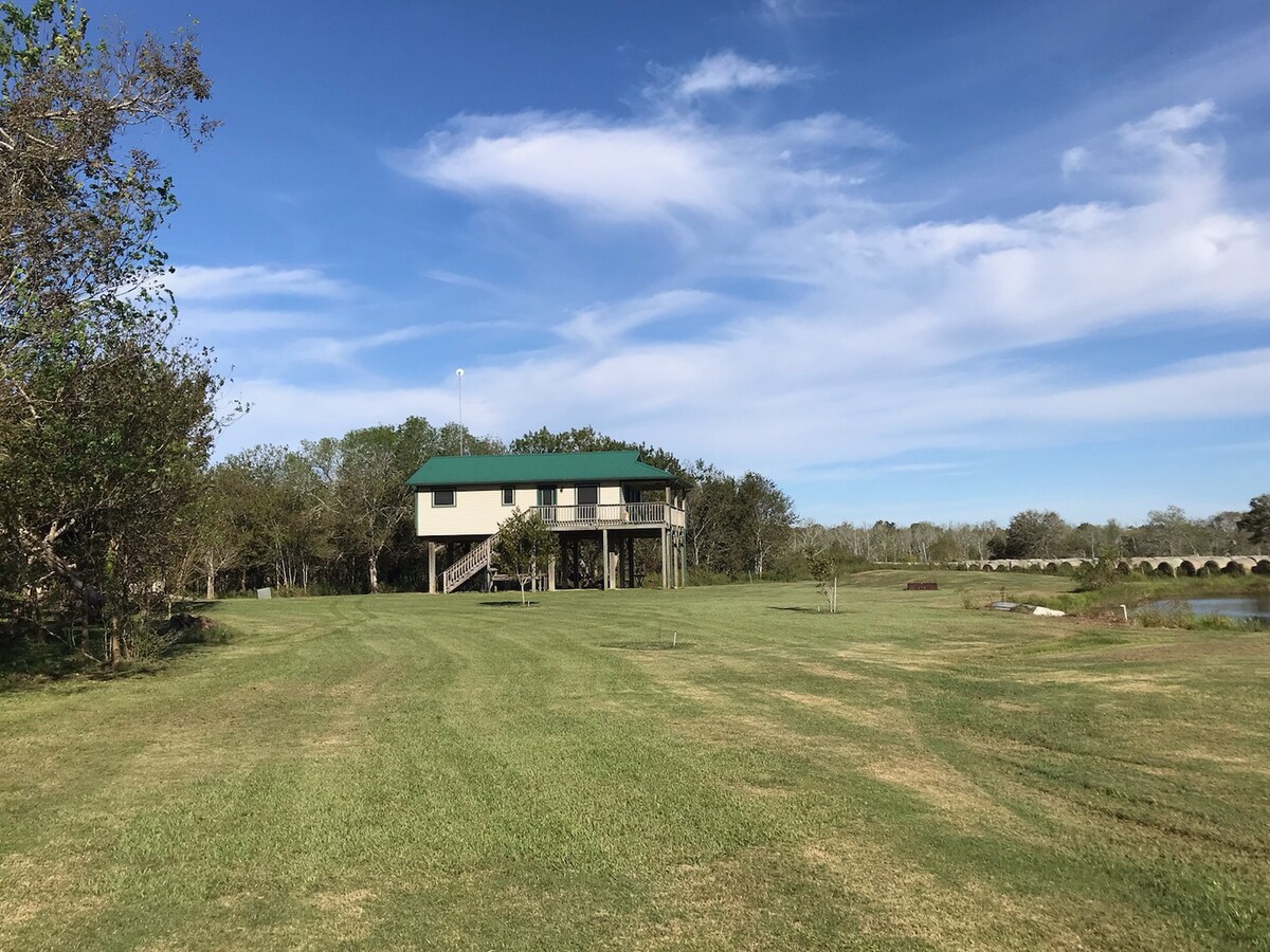 Nāciet atpūsties mūsu mājīgajā mājoklī pa upi tikai stundas brauciena attālumā no Hjūstonas. Izbaudiet mieru un klusumu, atpūšoties terasē, un vērojiet daudzos kolibri. Relaksējieties ar glāzi vīna un vakariņojiet, pavadot laiku ar draugiem un ģimeni uz terases, piestātnē vai pie ugunskura bedres. Izbaudiet makšķerēšanu vai peldēšanu upē vai tuvējās pludmales pilsētās Surfside, Sargent vai Matagorda. Tik daudz vietas tik jautrībai!